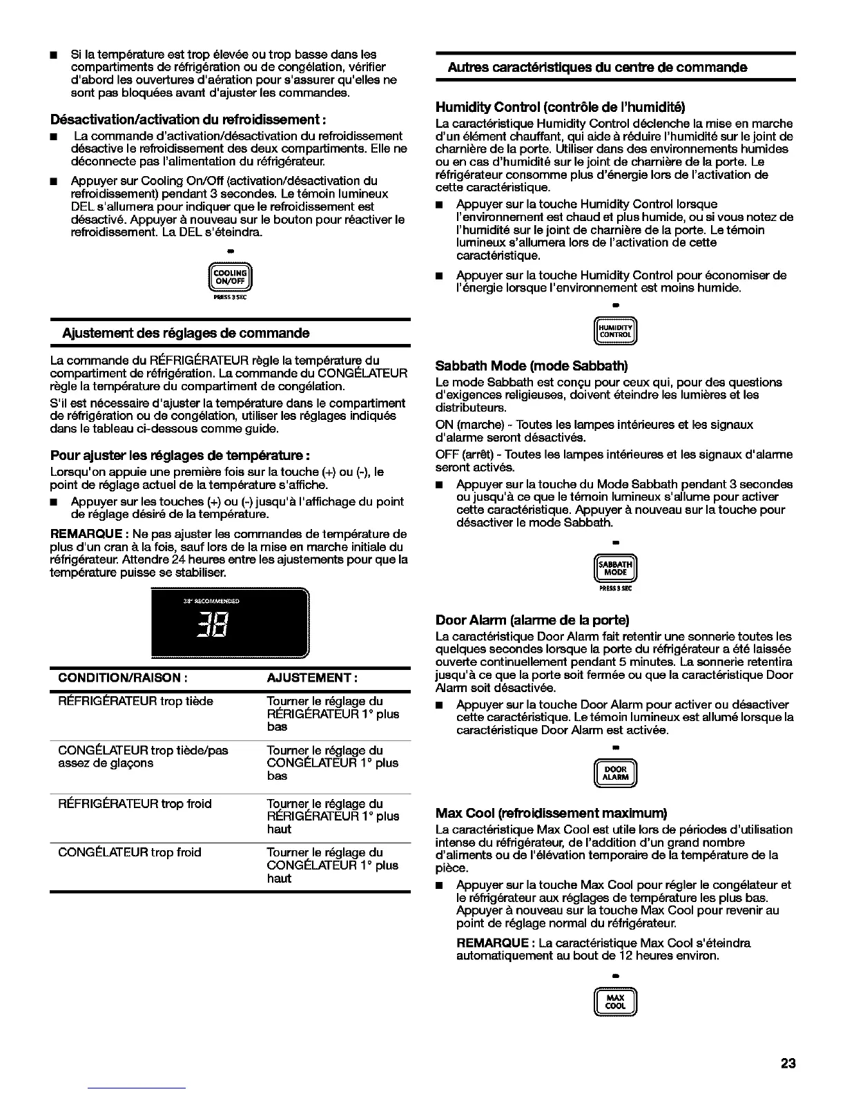 de r6frig6ration ou de cong61ation, utiliser les r6glages indiqu6s