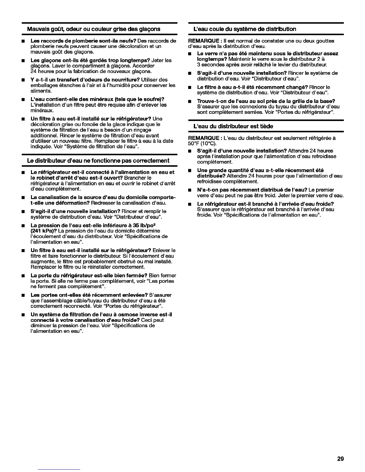 Le dis_ibuteur d'eau ne fonctionne pas correctement