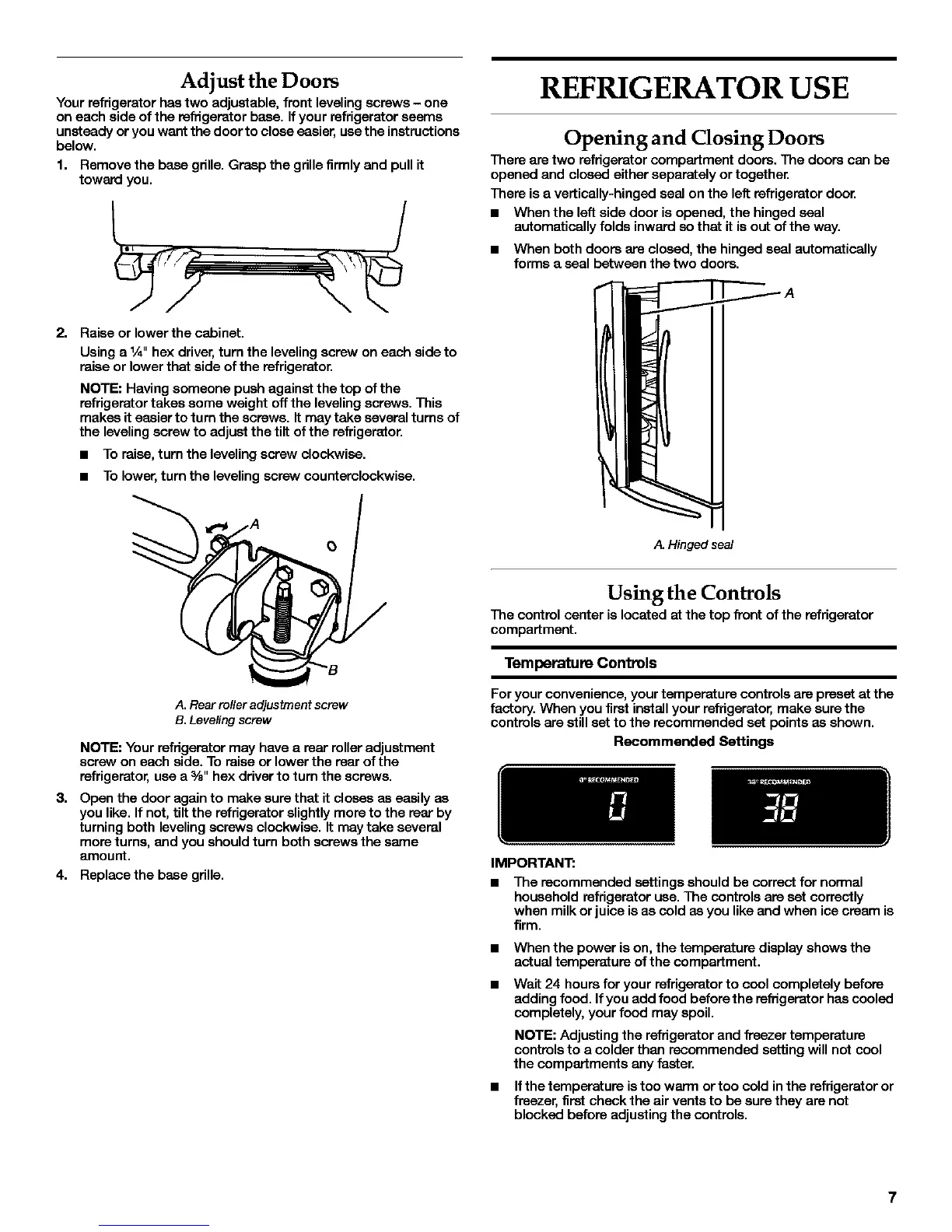 on each side of the refrigerator base. Ifyour refrigerator seems