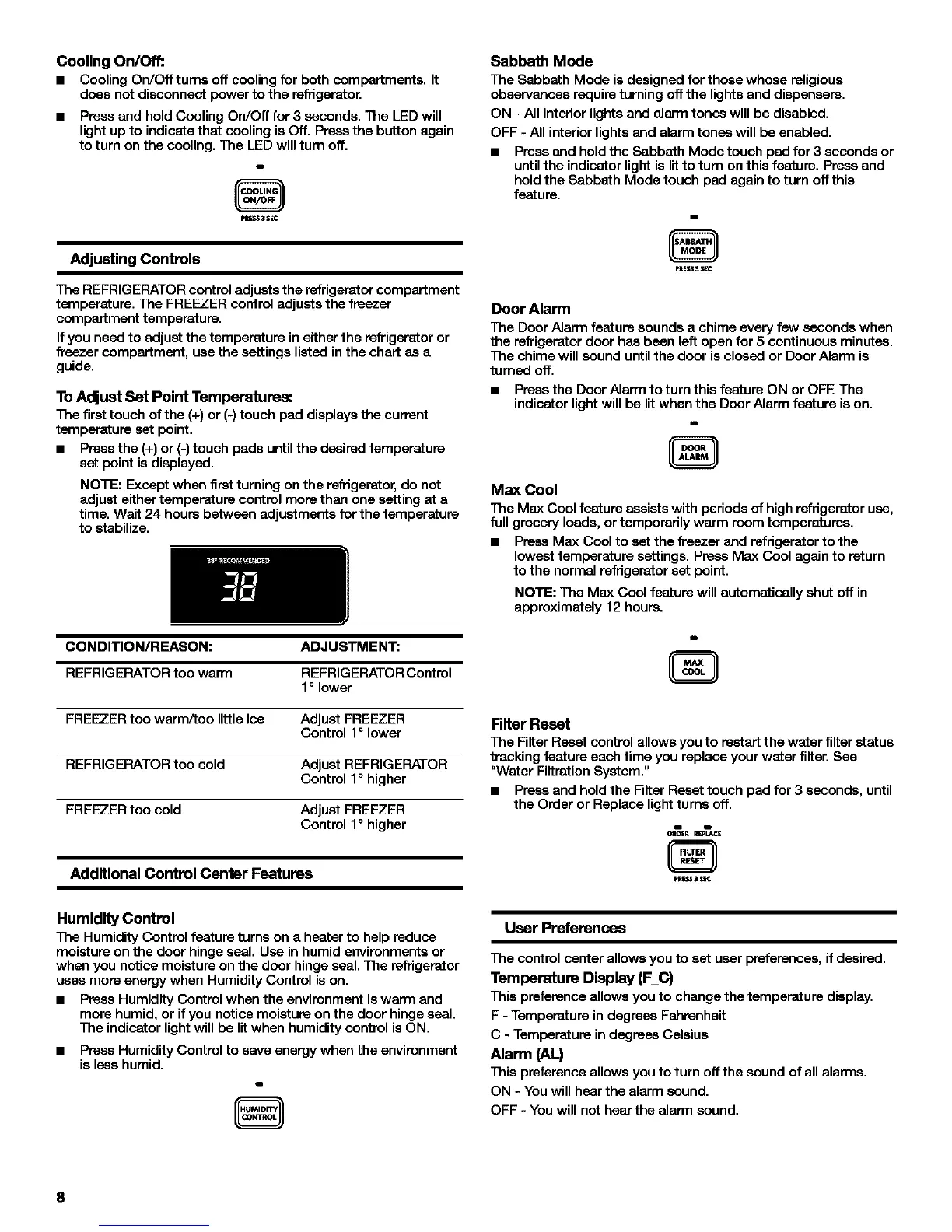 The REFRIGERATOR control adjusts the refrigerator compartment
