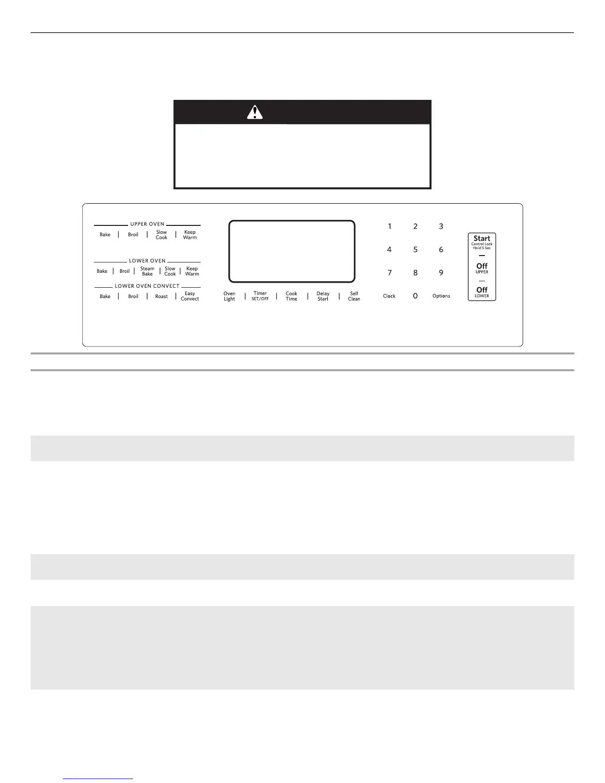Range function The upper and lower Off keypads stop any oven function except the Clock, Timer and Control