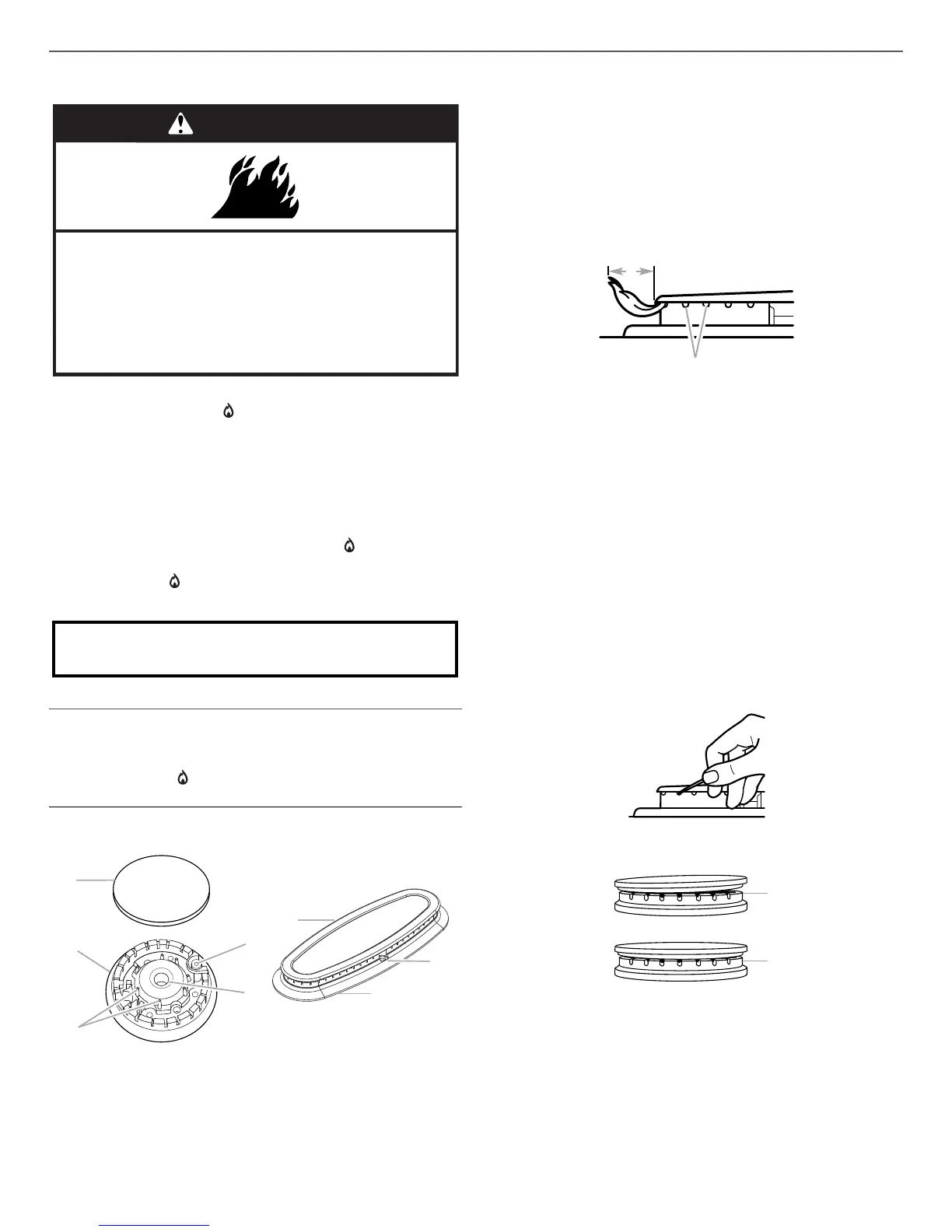 3. Clean clogged burner ports with a straight pin as shown. Do