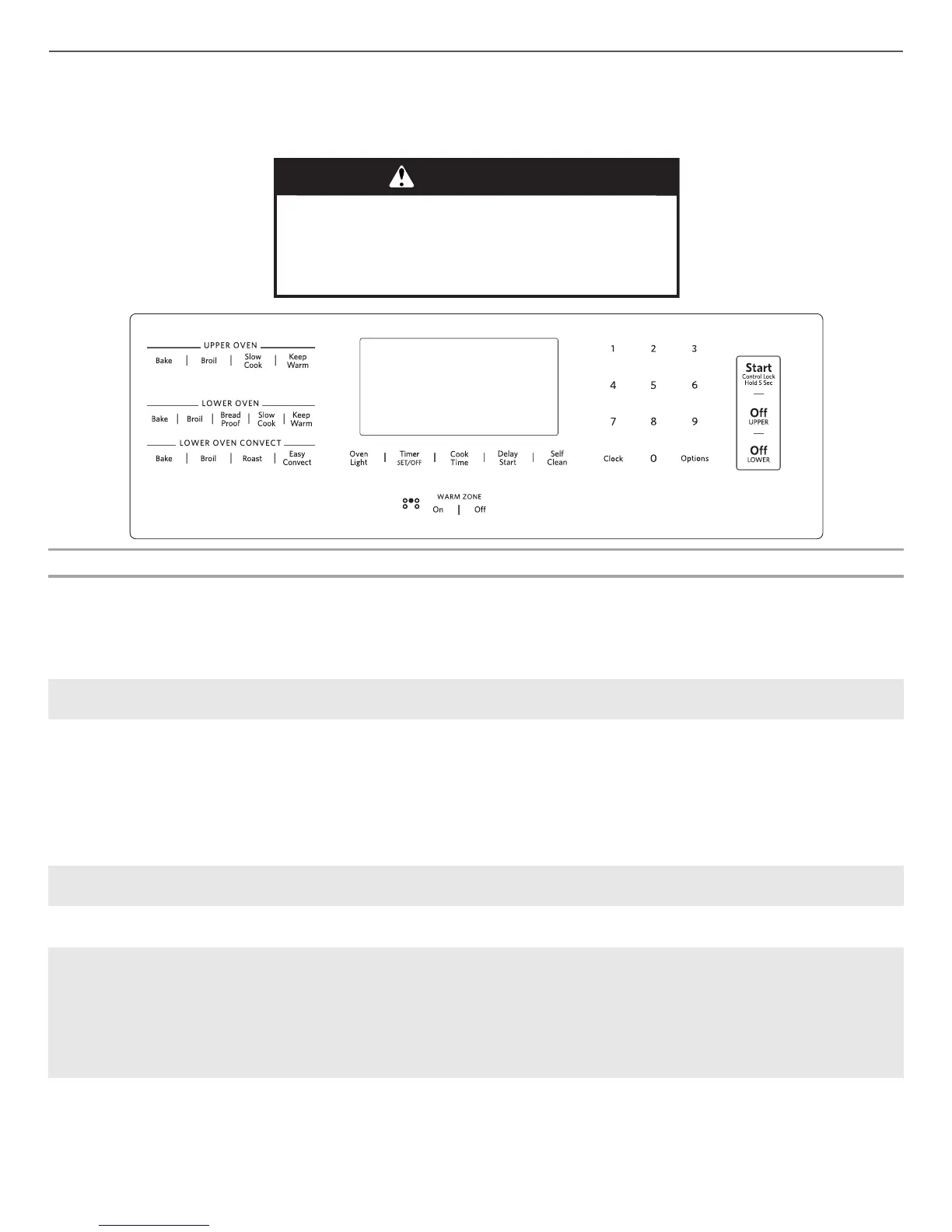 Range function The upper and lower Off keypads stop any oven function except the Clock, Timer and Control