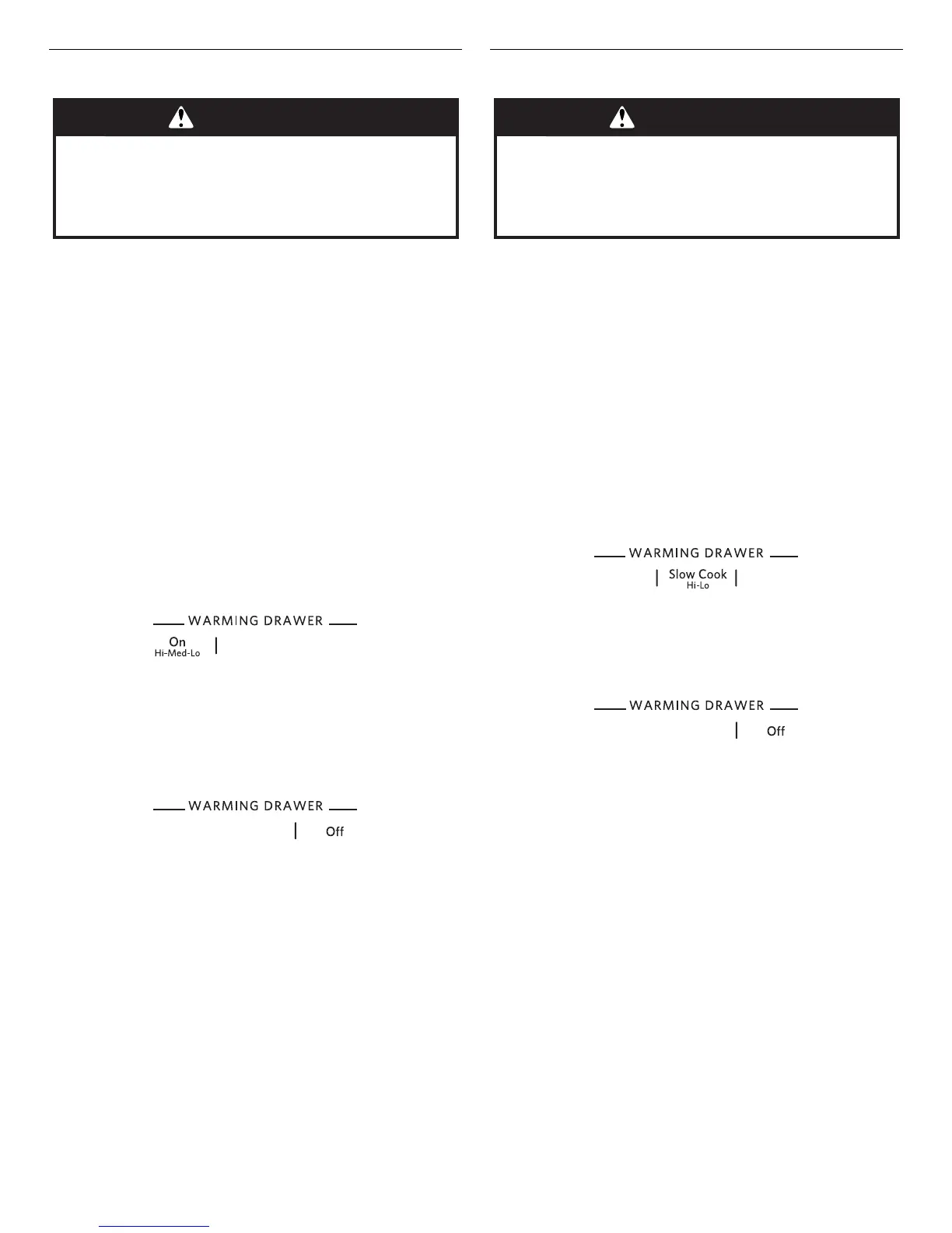 warming drawer. Breads, pastries, and fruit pies may be heated
