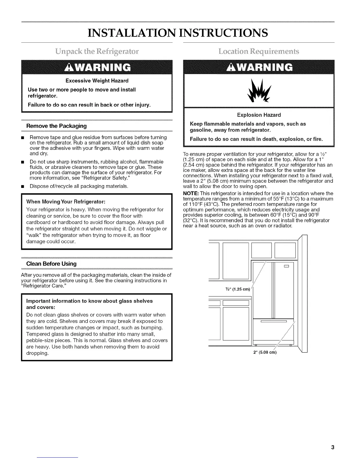 (2.54 cm) space behind the refrigerator. If your refrigerator has an