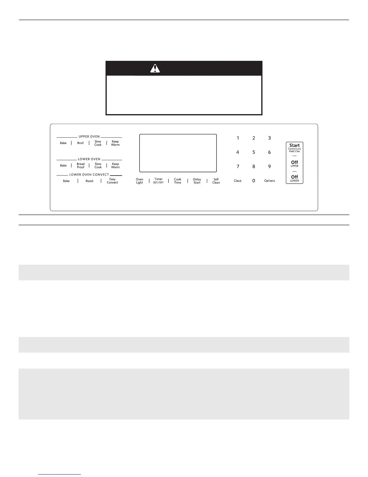 Range function The upper and lower Off keypads stop any oven function except the Clock, Timer and Control