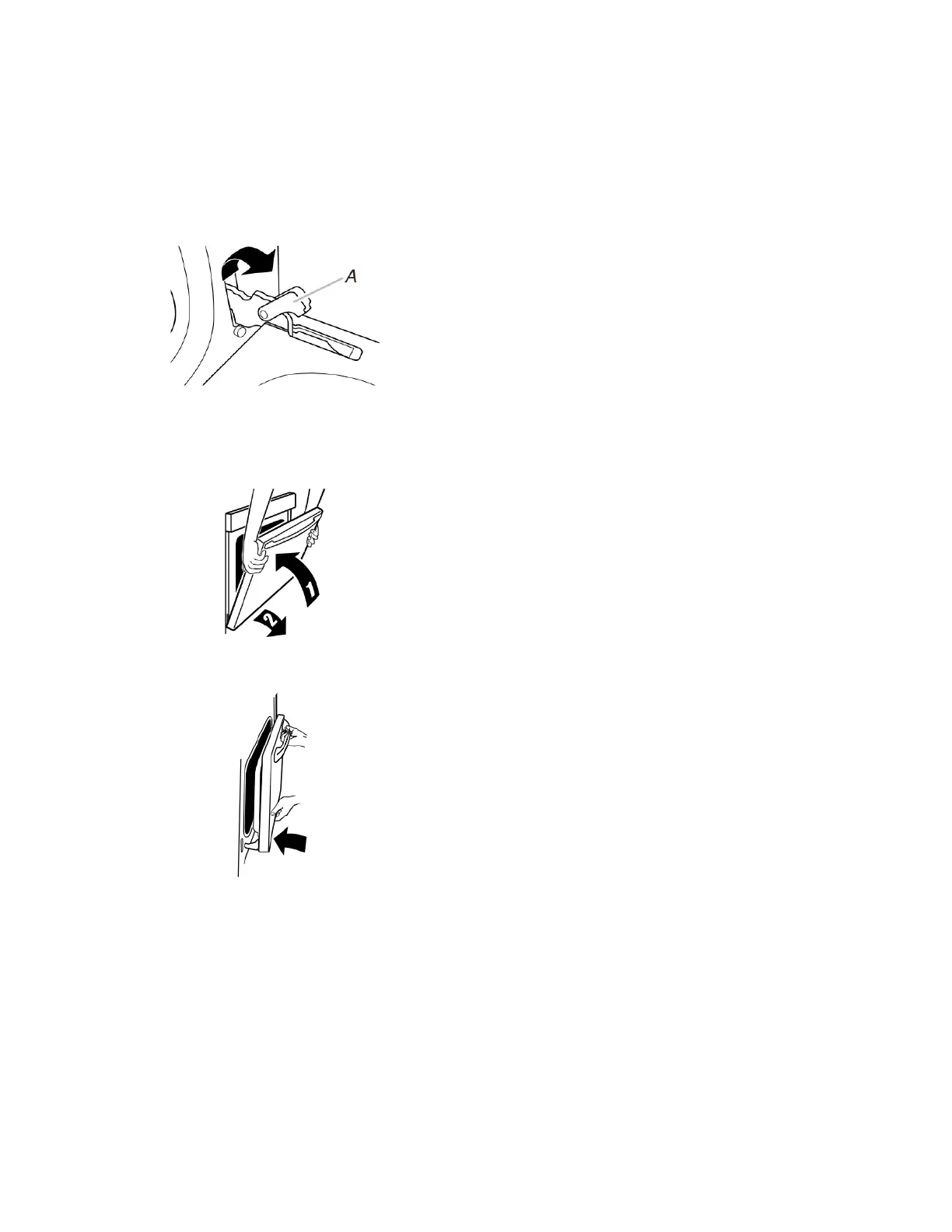 2. Pincer le loquet de charnière entre les deux doigts et le tirer