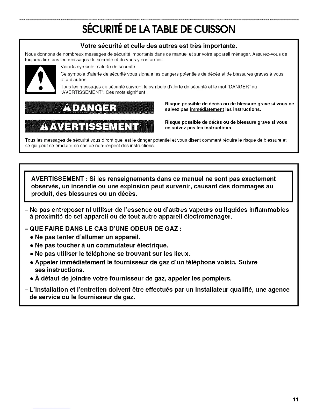 Nous donnons de nombreux messages de securit6 importants dans ce manuel et sur votre appareil menager. Assurez-vous de