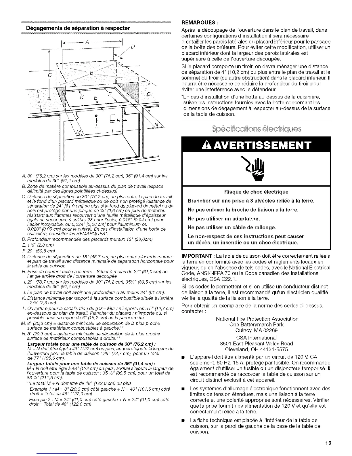 A. 30" (76,2 cm) sur les modeles de 30" (76,2 cm); 36" (91,4 cm) sur les