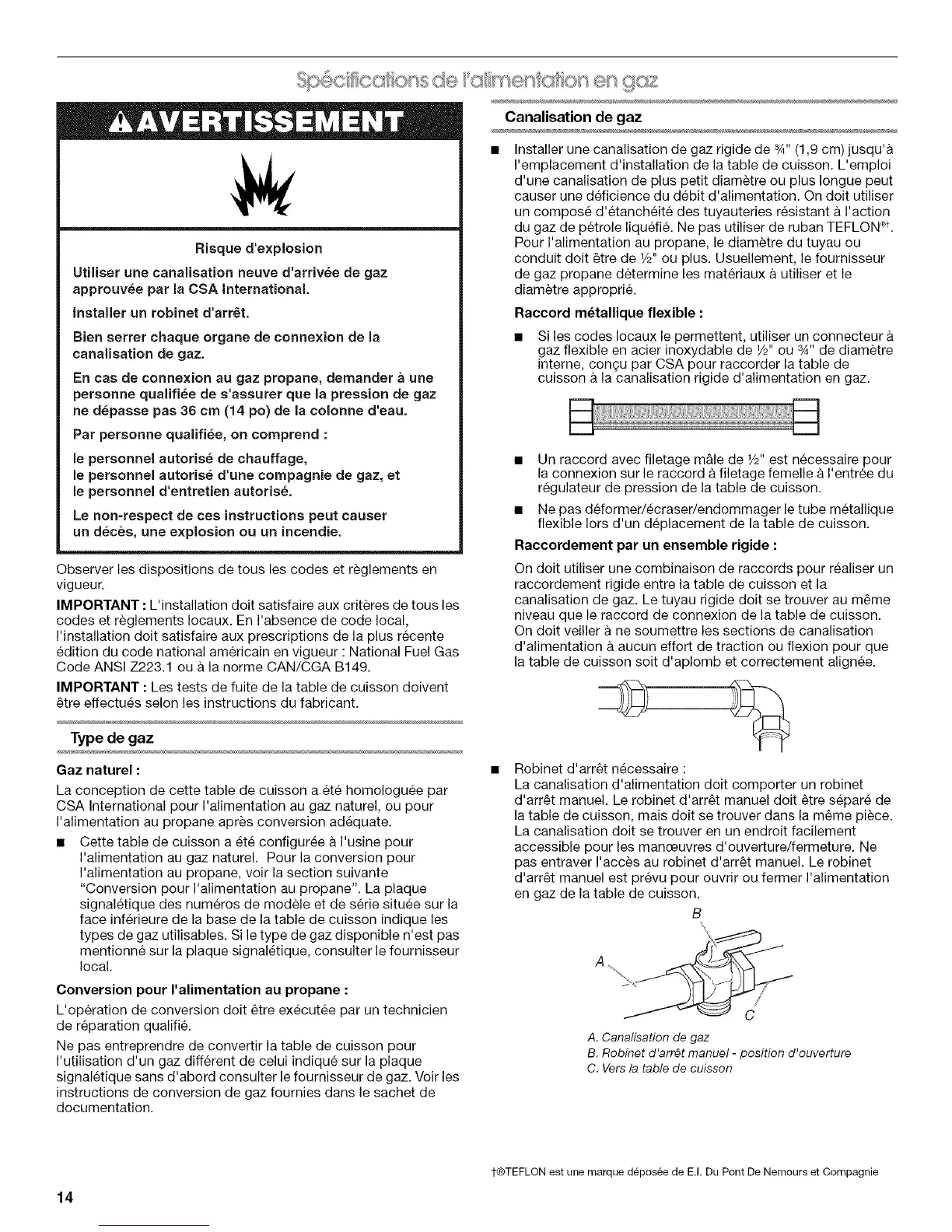 Code ANSI Z223.1 ou a la norme CAN/CGA B149.