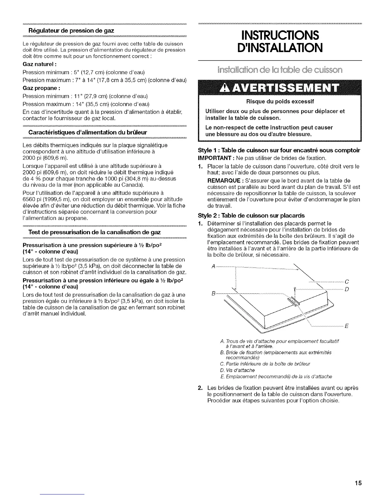 Le r6gulateur de pression de gaz fourni avec cette table de cuisson
