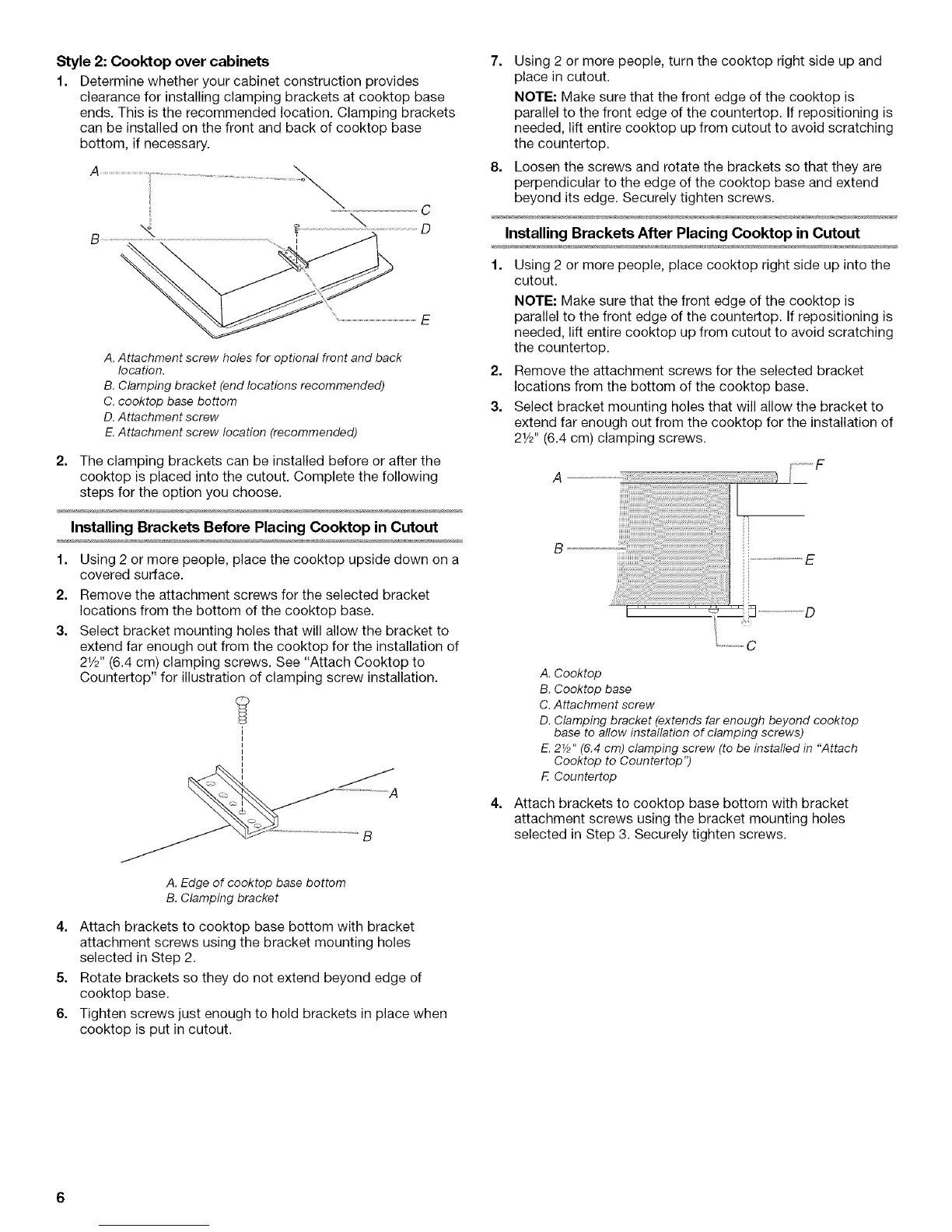 21/2'' (6.4 cm) clamping screws. See "Attach Cooktop to