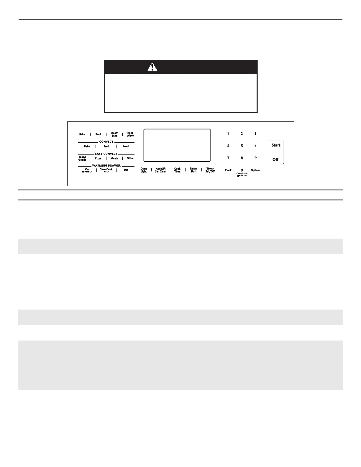 OFF Range function The Off keypad stops any oven function except the Clock, Timer, Control Lock, and Warming