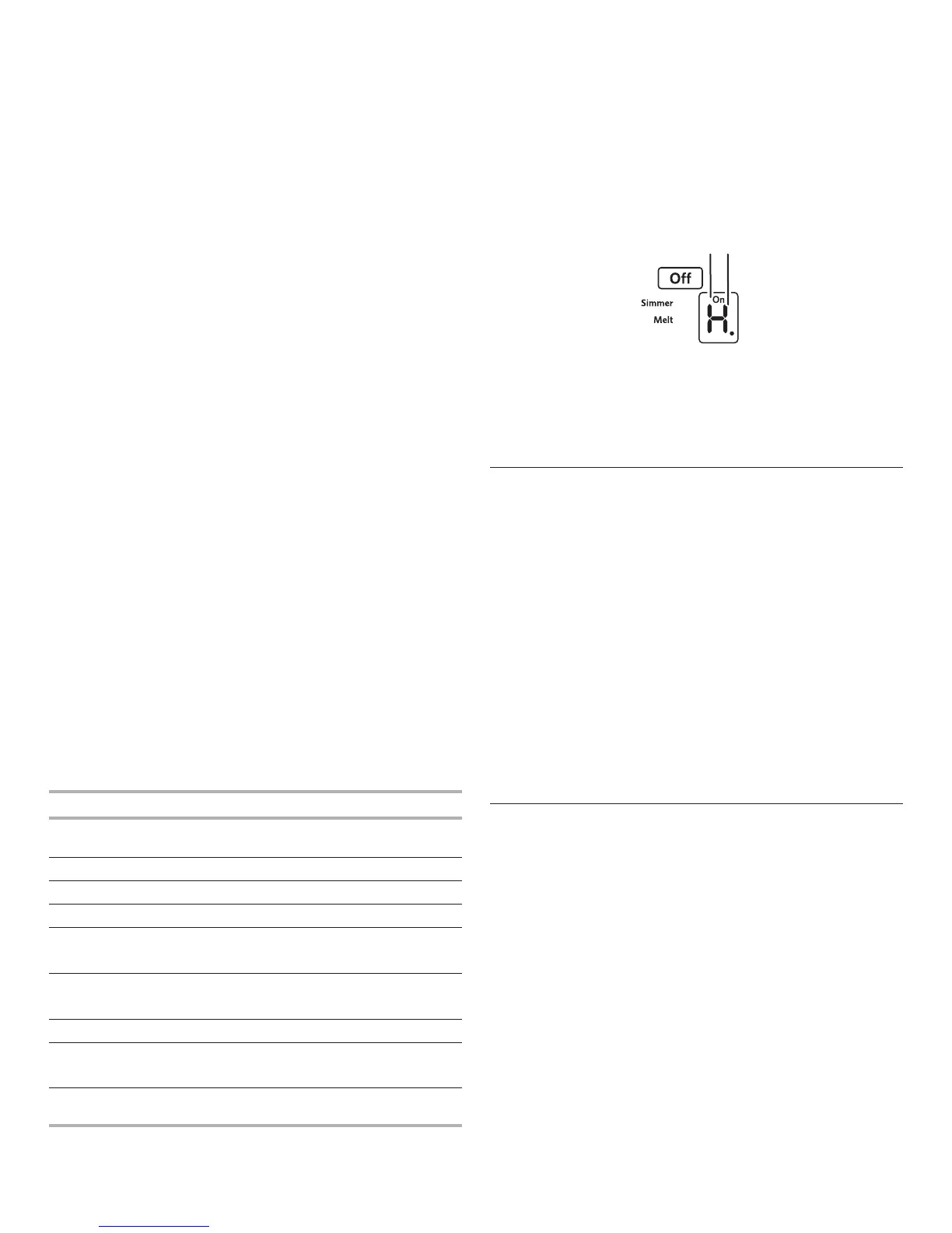 est allumée, le témoin de surface chaude “H” reste allumé jusqu’à