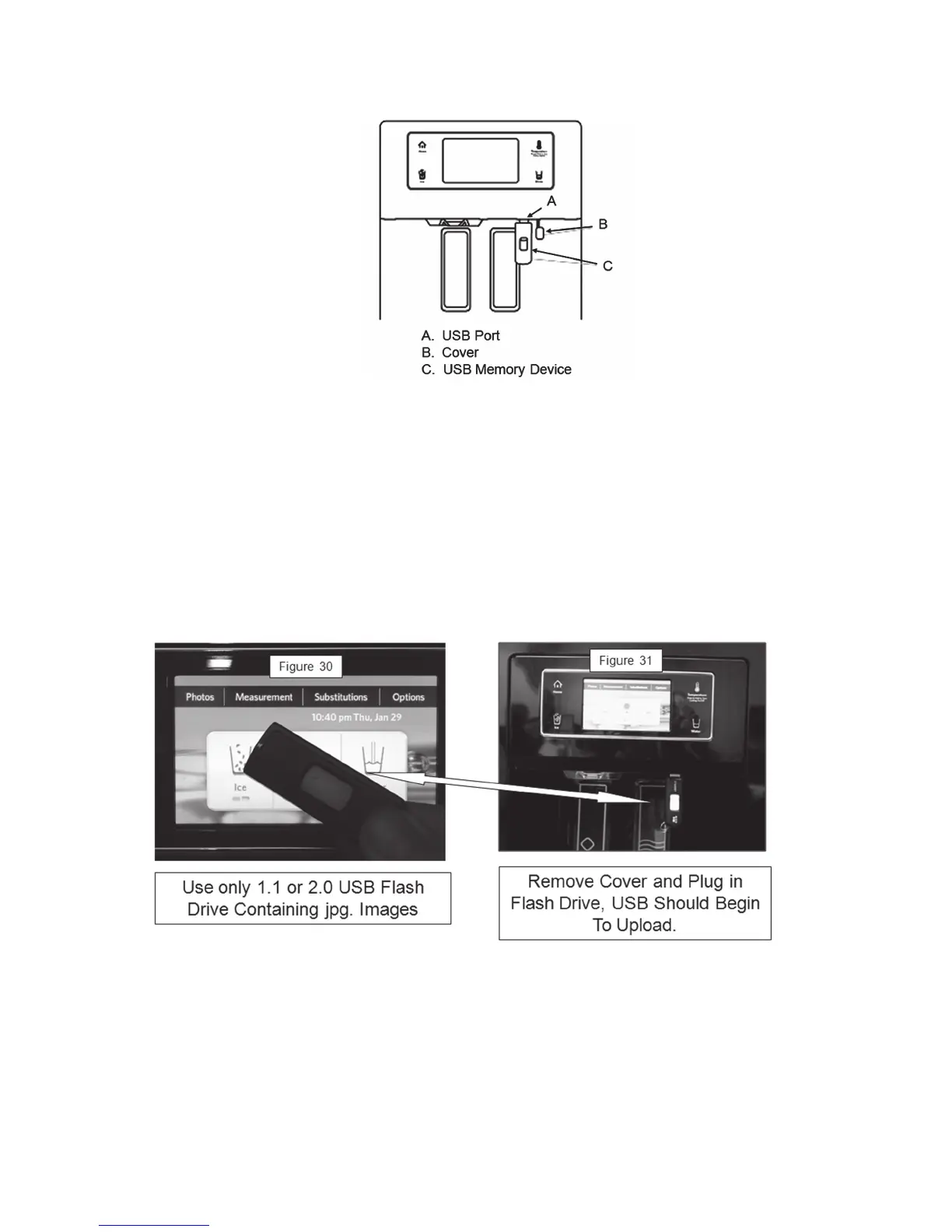 The ice and water dispensers will not function when the USB memory device is