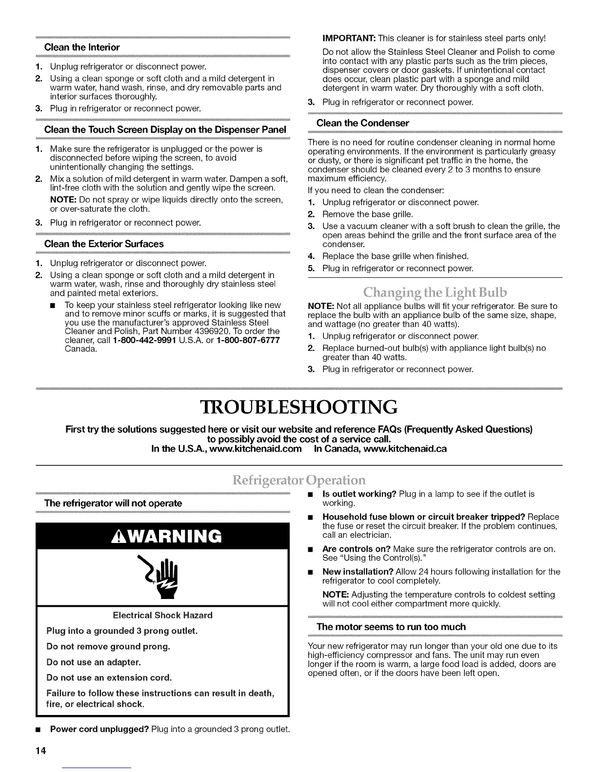 2. Replace burned-out bulb(s) with appliance light bulb(s) no