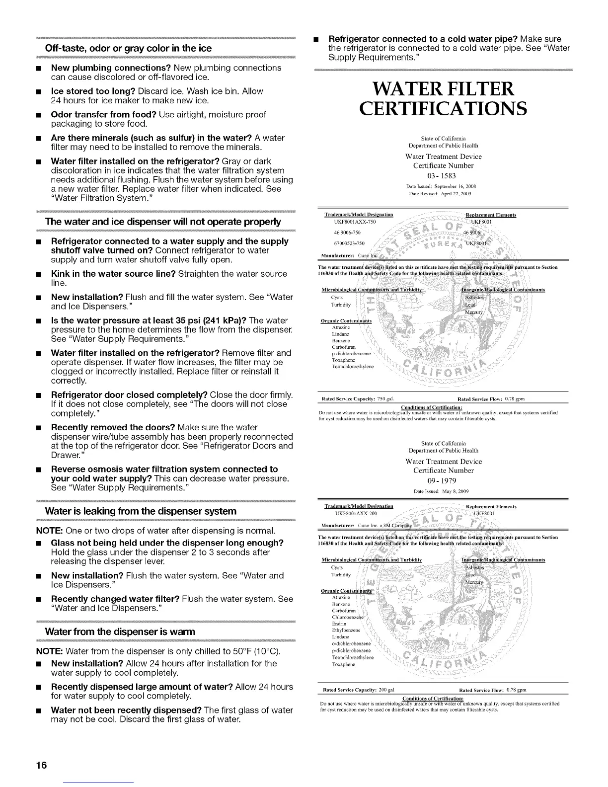 operate dispenser. If water flow increases, the filter may be