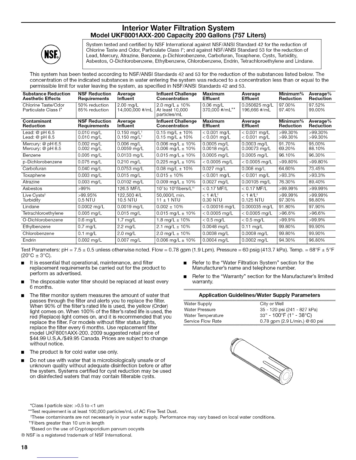System tested and certified by NSF International against NSF/ANSI Standard 42 for the reduction of