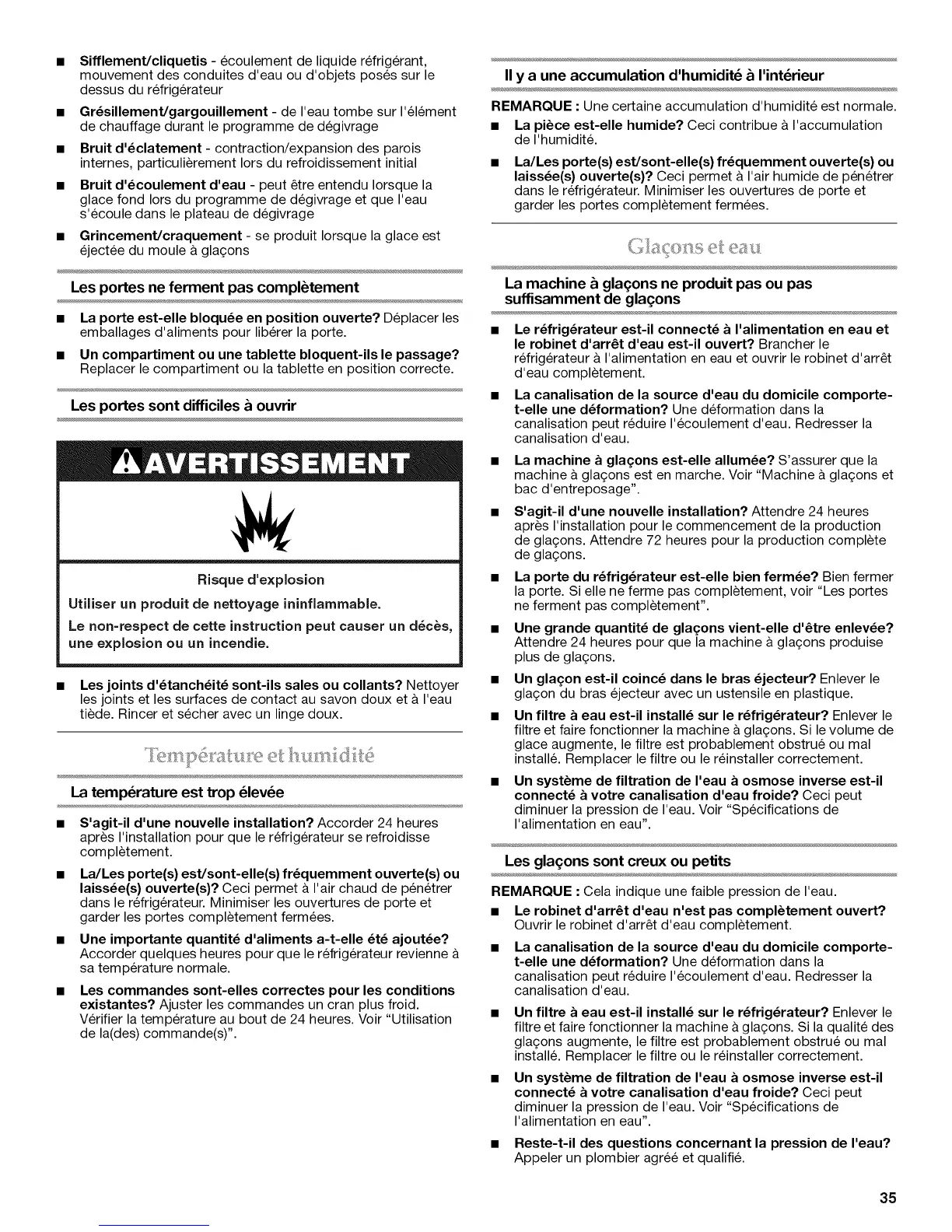 REMARQUE : Une certaine accumulation d'humidite est normale.