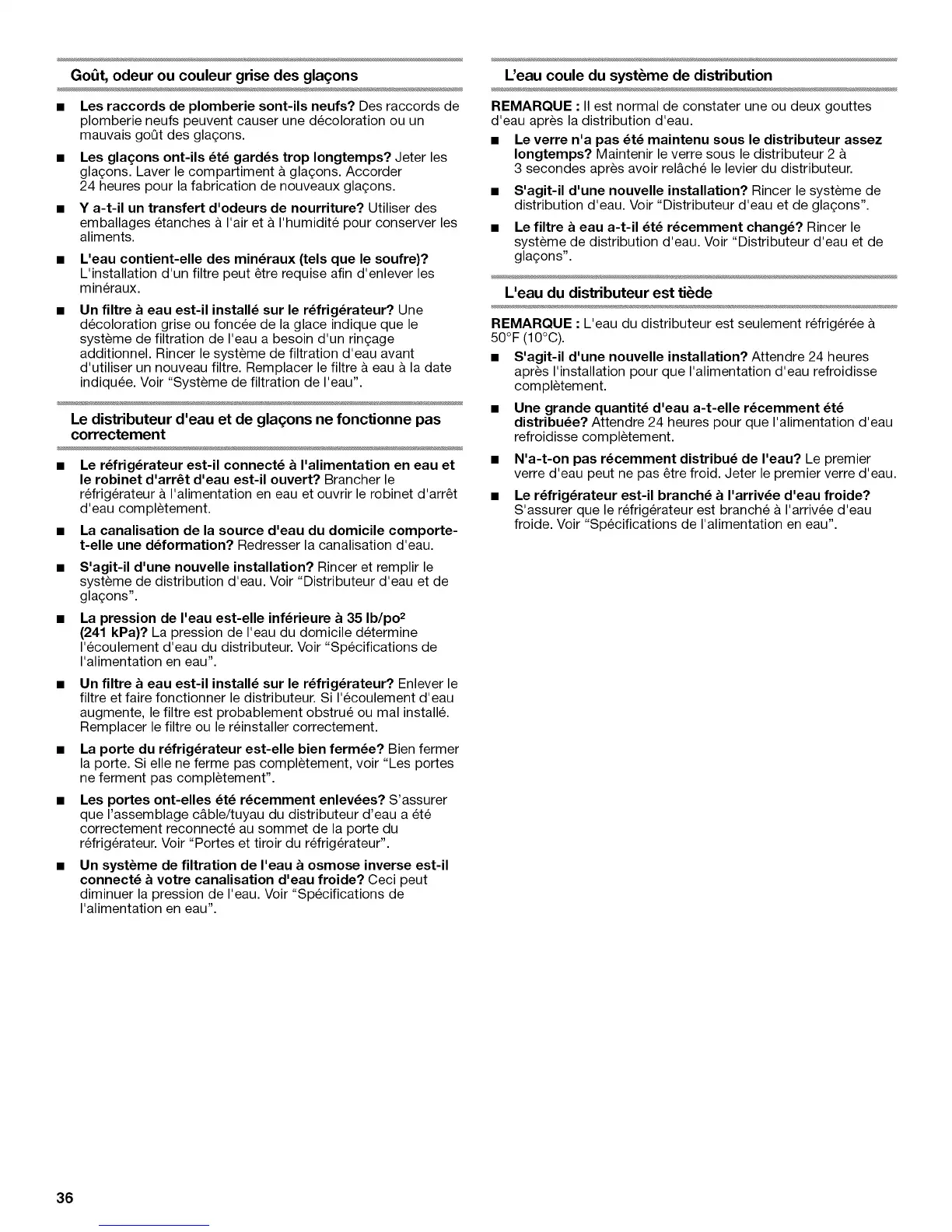 distribution d'eau. Voir "Distributeur d'eau et de gla_ons".