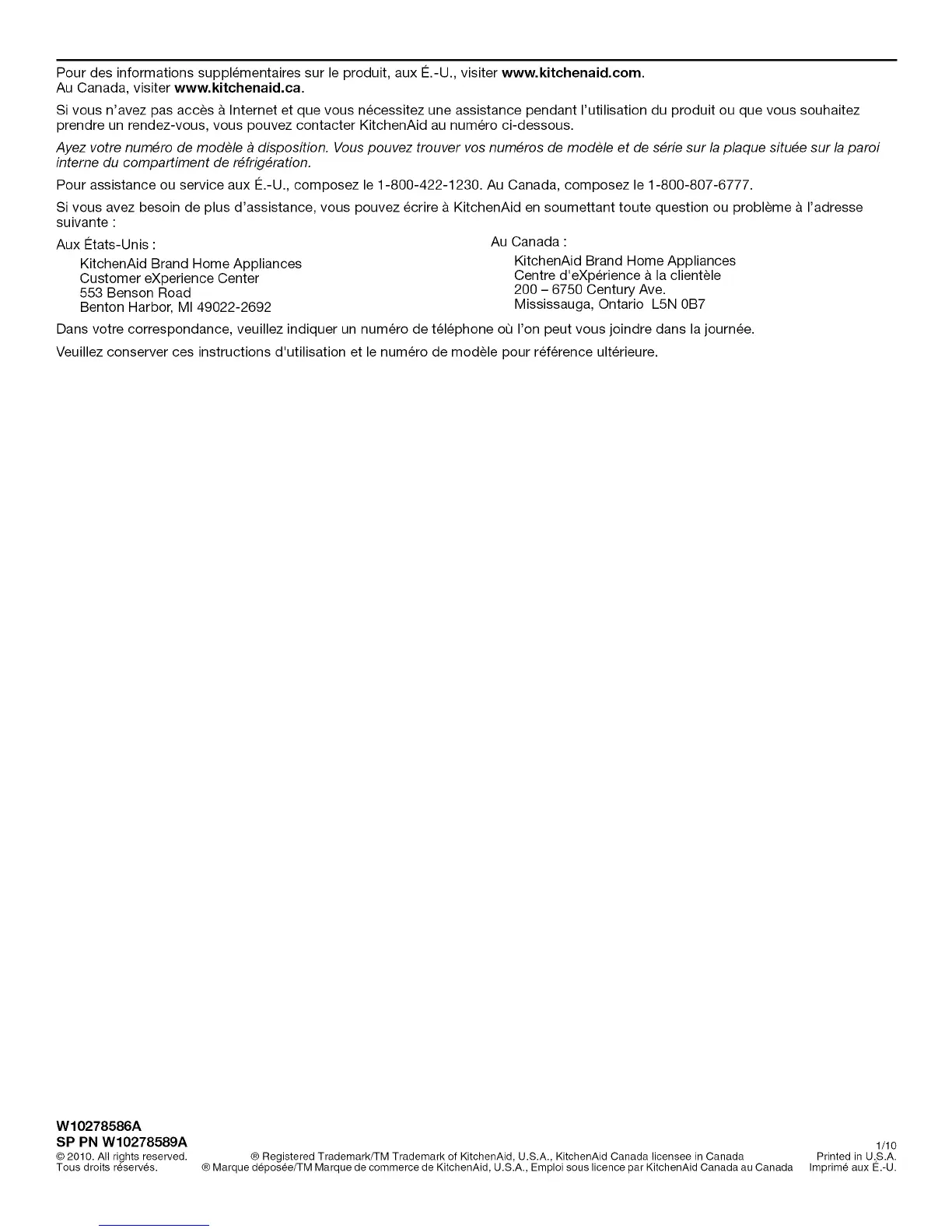 Pour des informations supplementaires sur le produit, aux €:.-U., visiter www.kitchenaid.com.