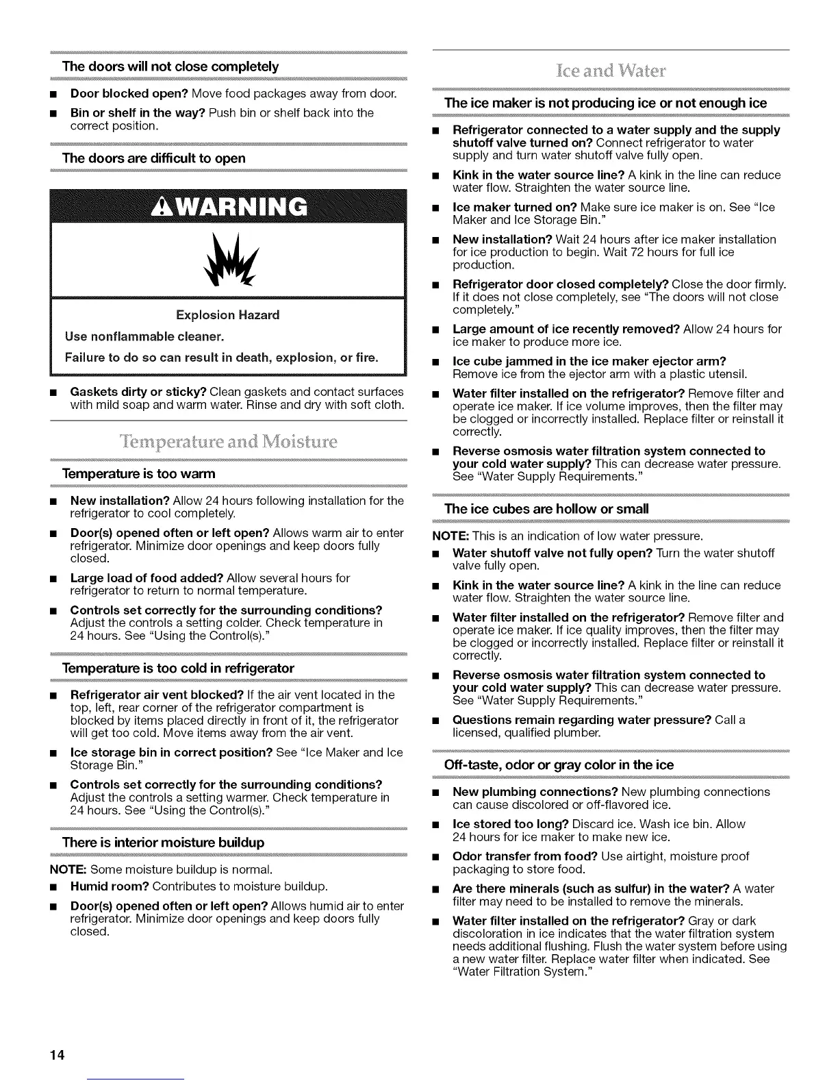 Ice storage bin in correct position? See "Ice Maker and Ice