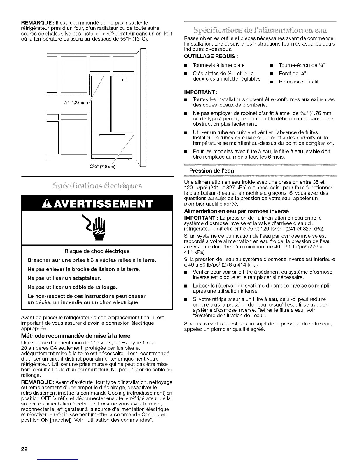refrigerateur dolt _tre entre 35 et 120 Ib/po 2(241 et 827 kPa).