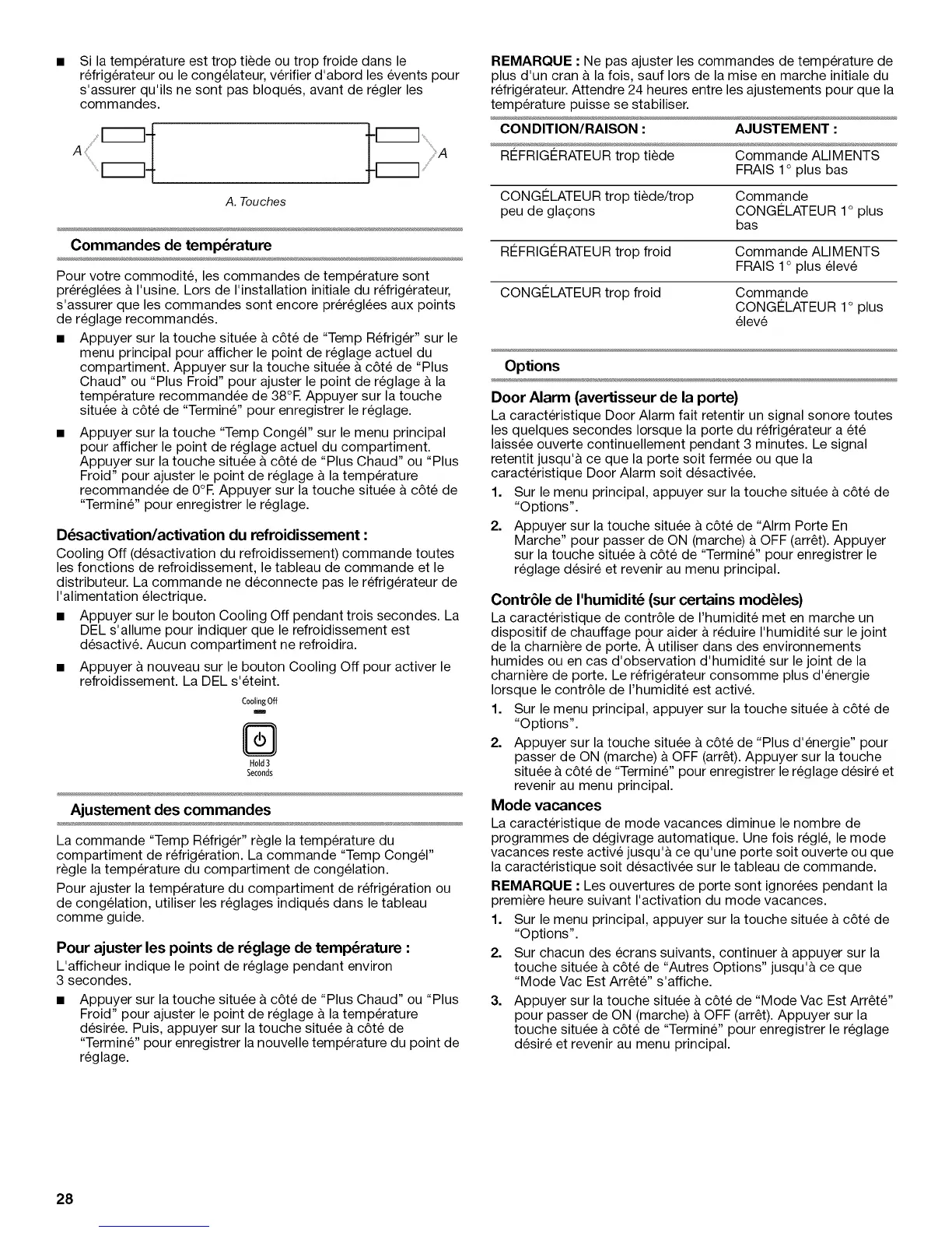refrigerateur. Attendre 24 heures entre les ajustements pour que la