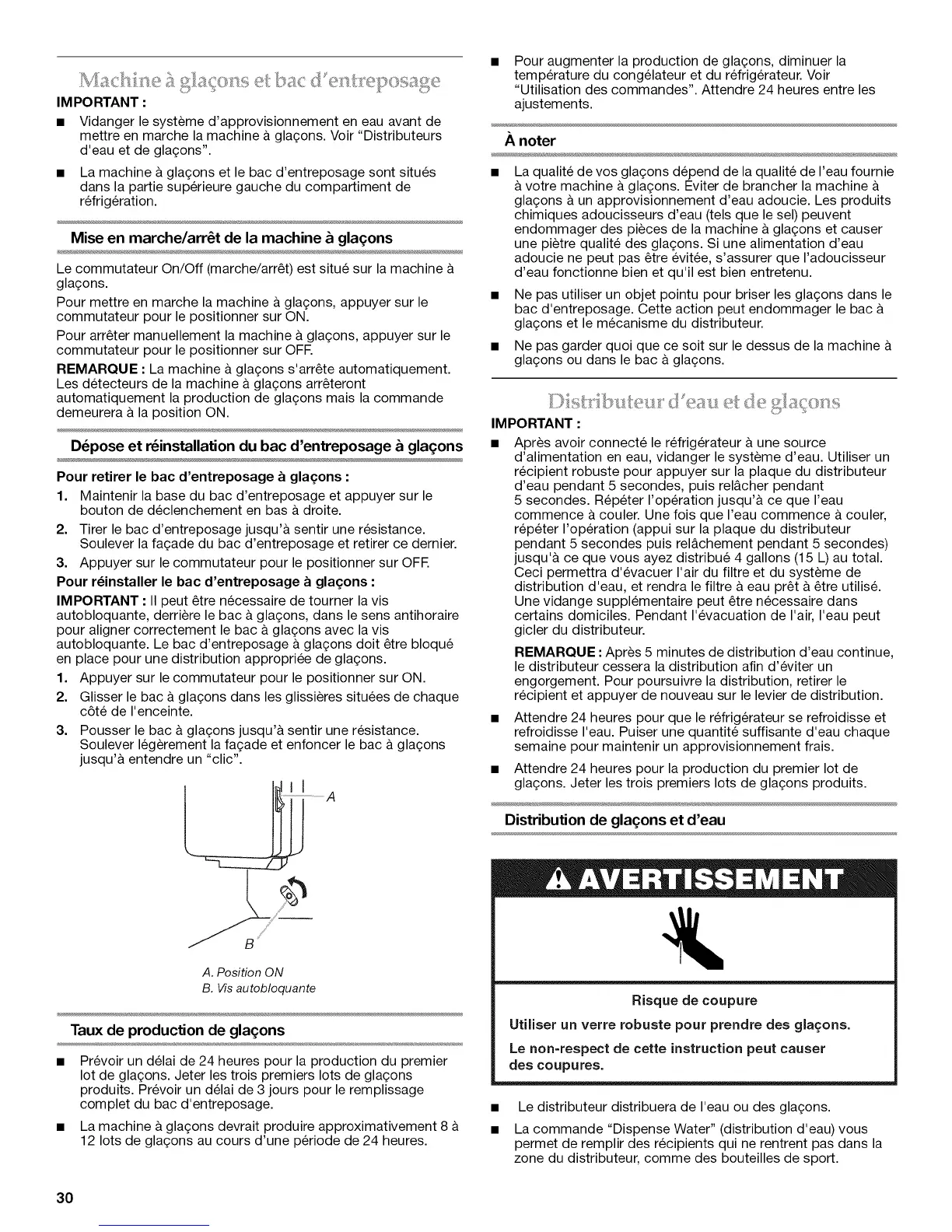 gla£;ons. Jeter les trois premiers lots de gla£;ons produits.