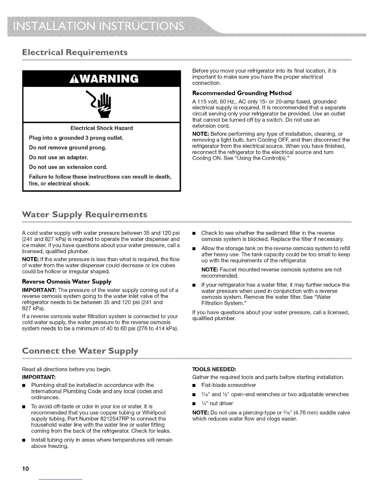 NOTE: Do not use a piercing-type or 3/le"(4.76 mm) saddle valve