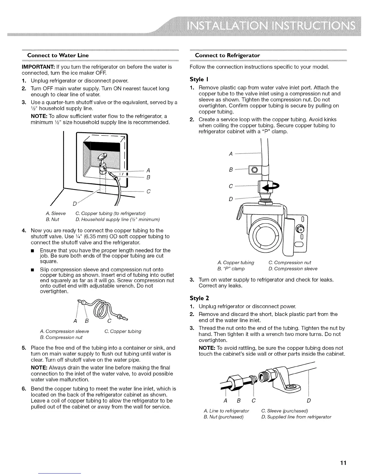shutoff valve. Use 1/4"(6.35 mm) OD soft copper tubing to