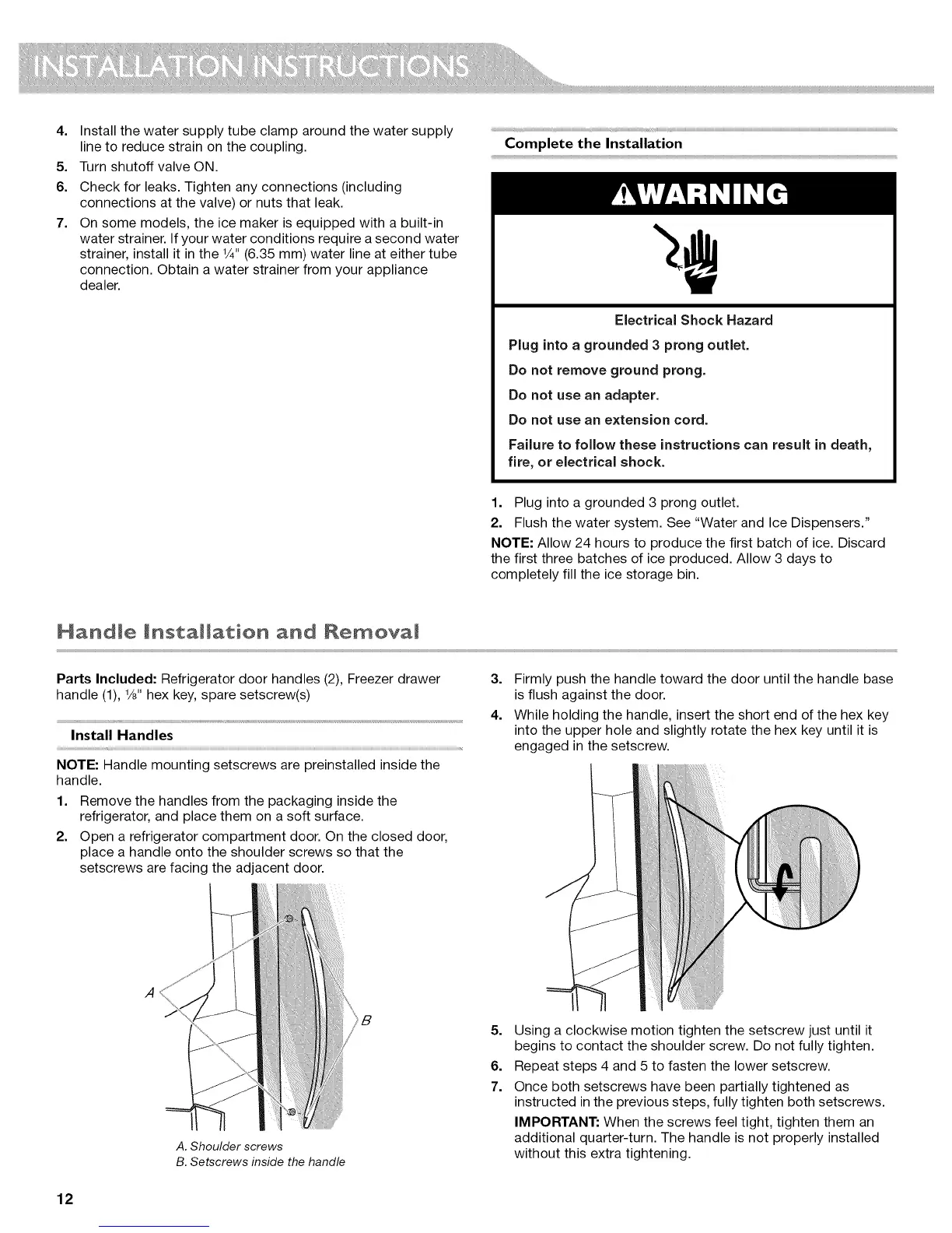 Parts Included: Refrigerator door handles (2), Freezer drawer