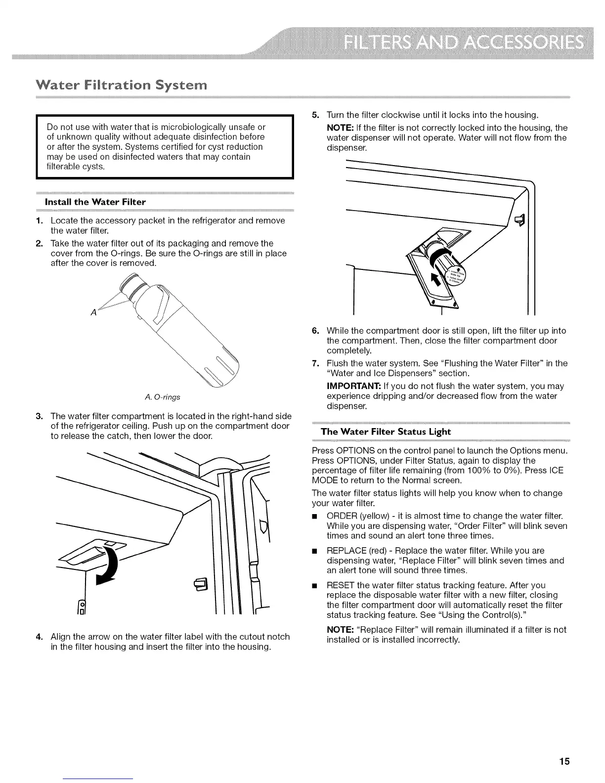 The water filter status lights will help you know when to change