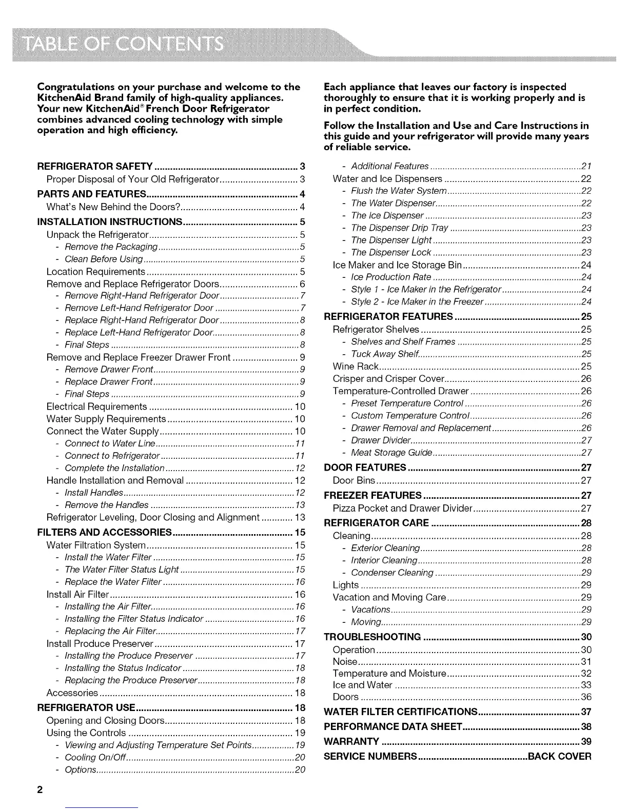 WATER FILTER CERTIFICATIONS ....................................... 37