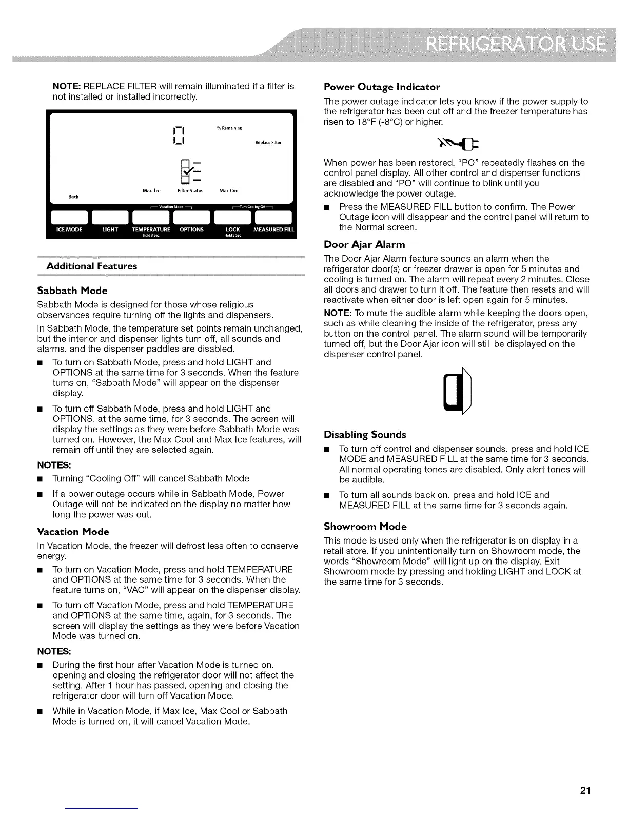 NOTE: REPLACE FILTER will remain illuminated if a filter is