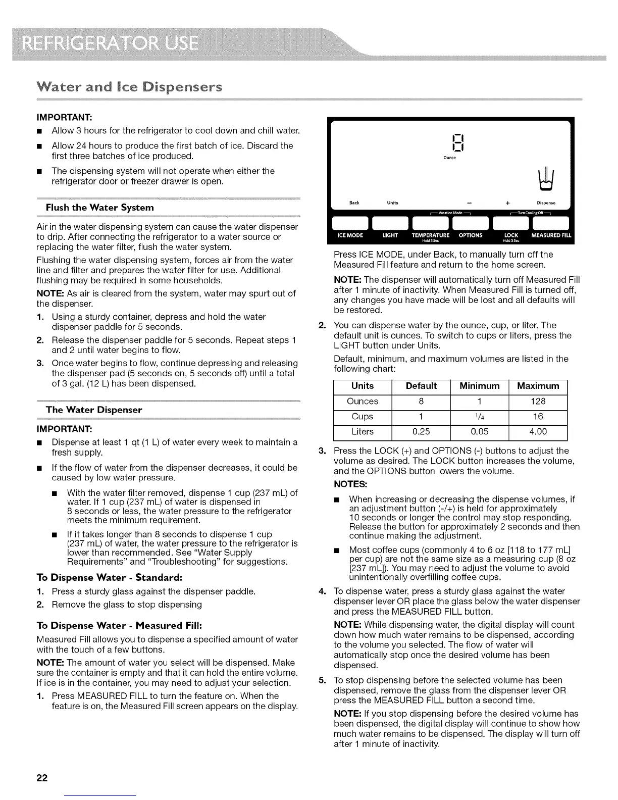 • Dispense at least 1 qt (1 L) of water every week to maintain a
