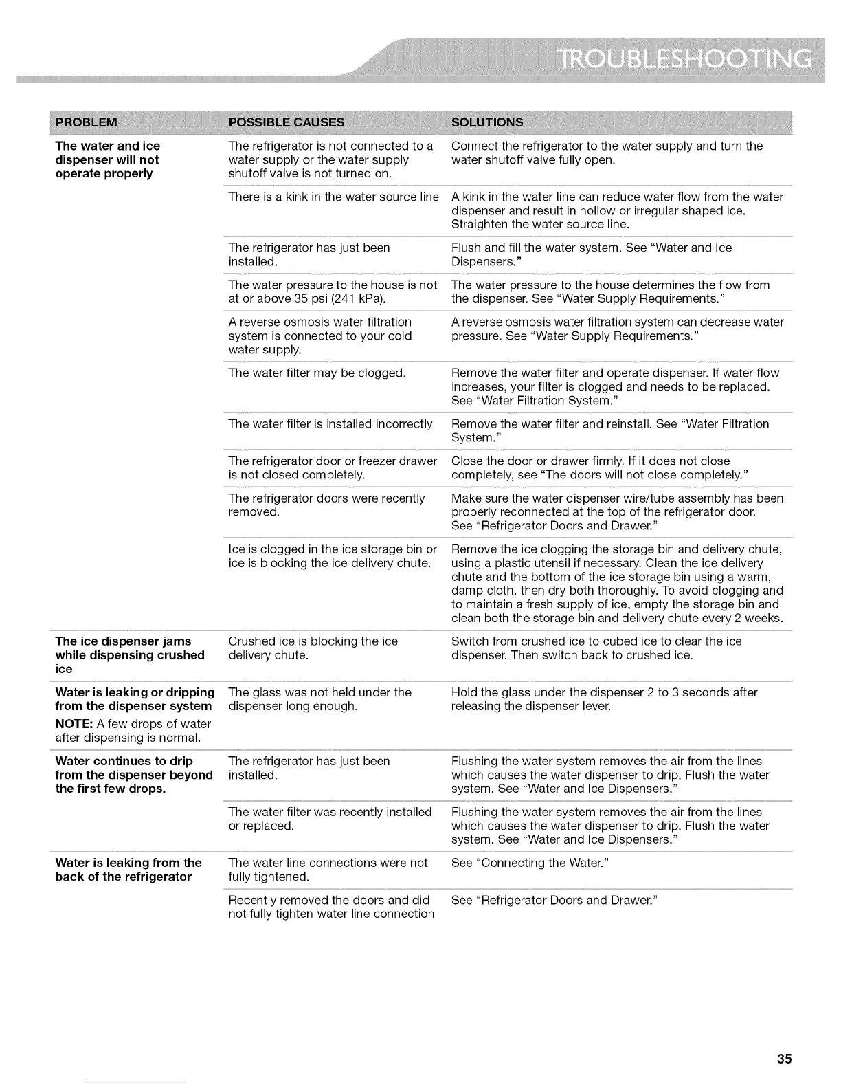 the first few drops, system. See "Water and Ice Dispensers."