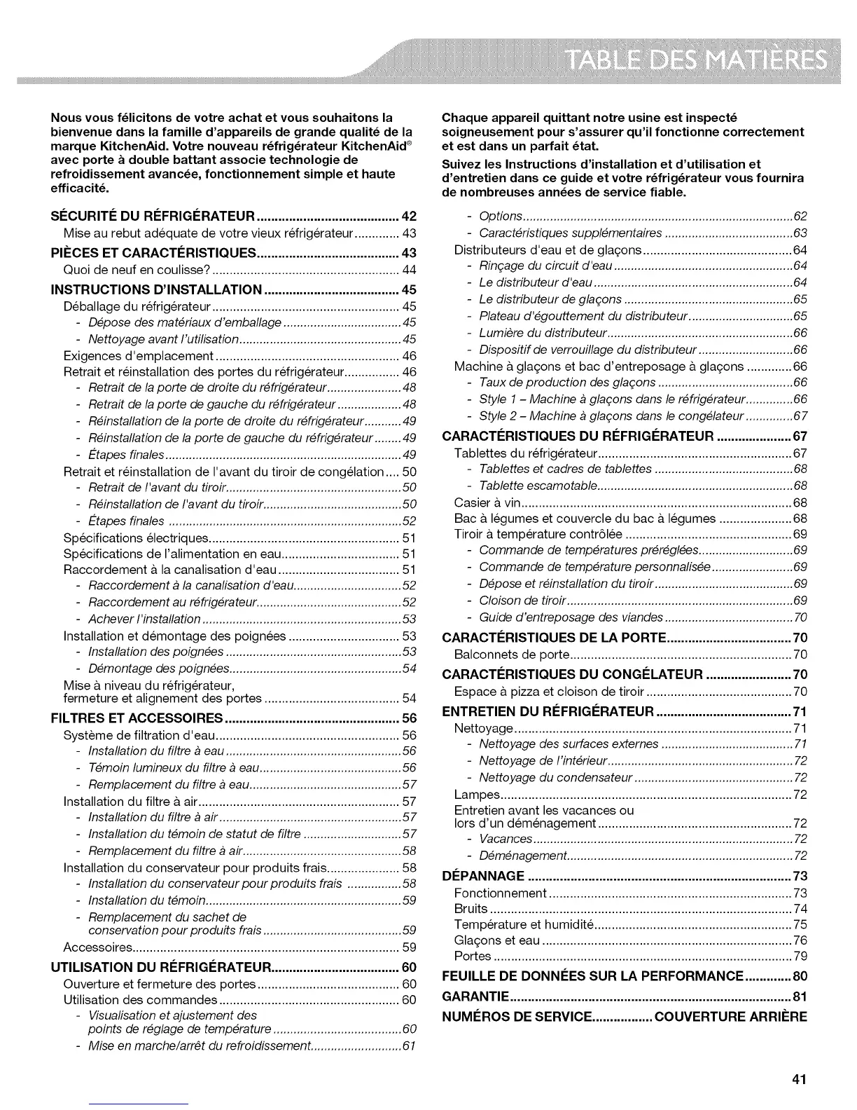 Mise au rebut adequate de votre vieux refrigerateur ............. 43