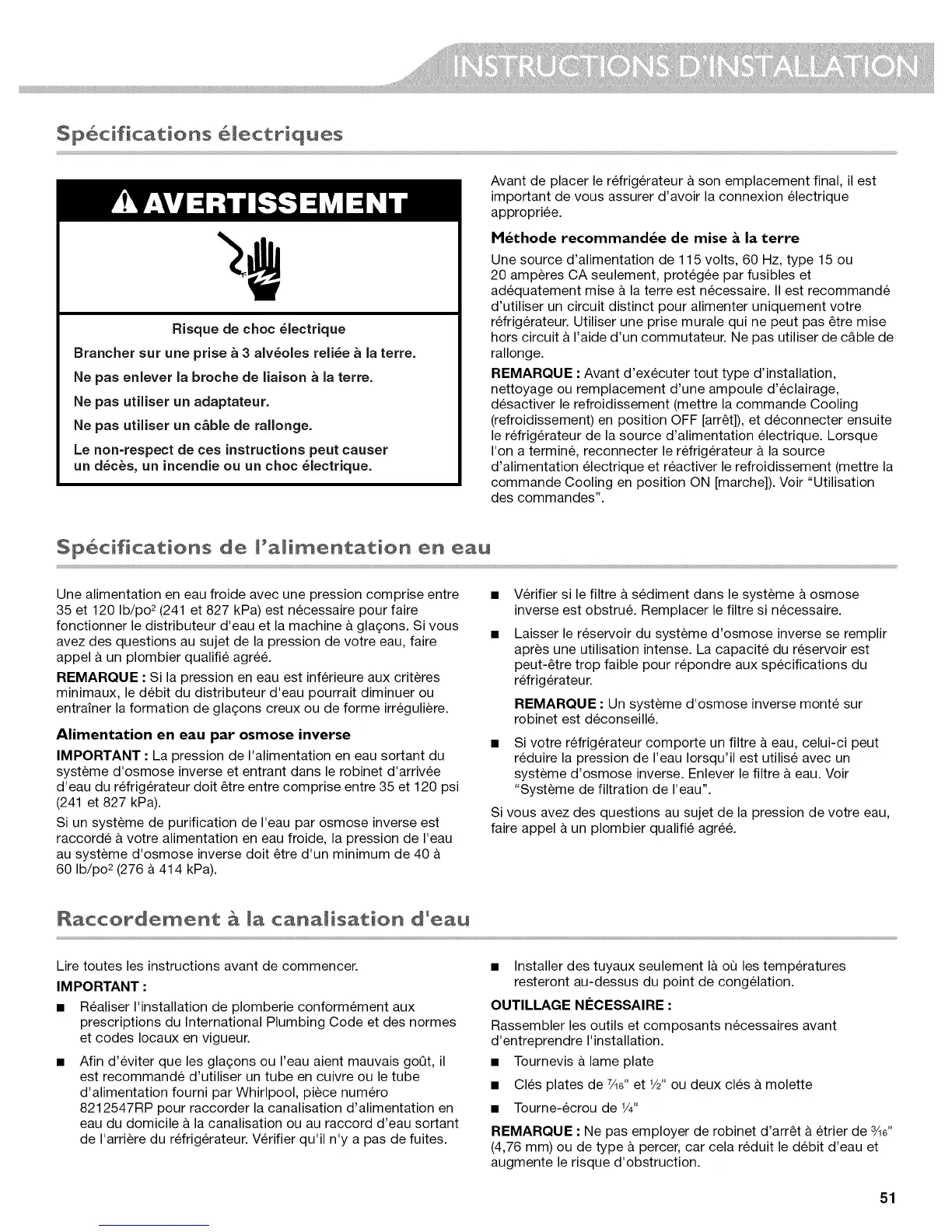 d'eau du refrigerateur doit etre entre comprise entre 35 et 120 psi
