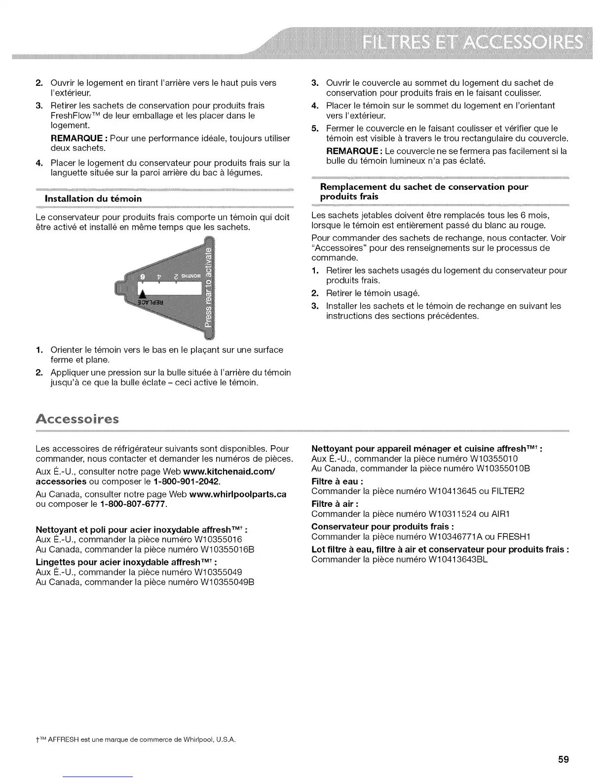 t AFFRESH est une marque de commerce de Whirlpool, U.S.A.