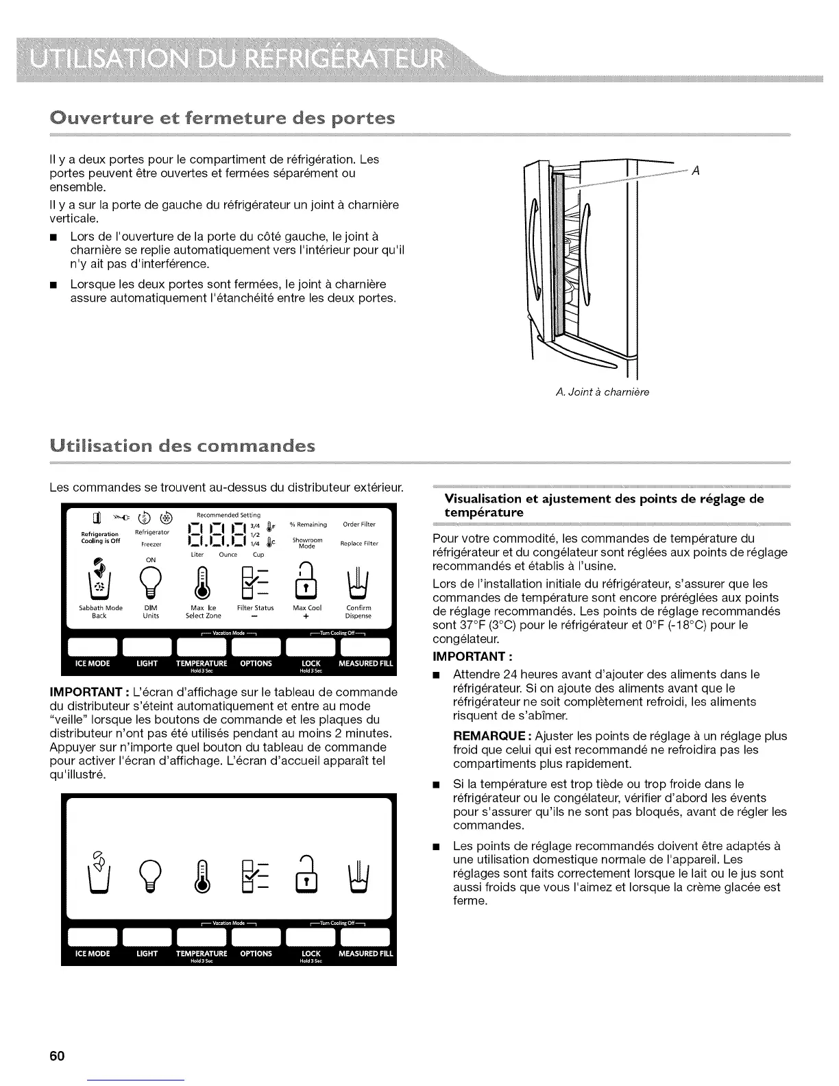sont 37°F (3°C) pour le refrigerateur et 0°F (-18°C) pour le