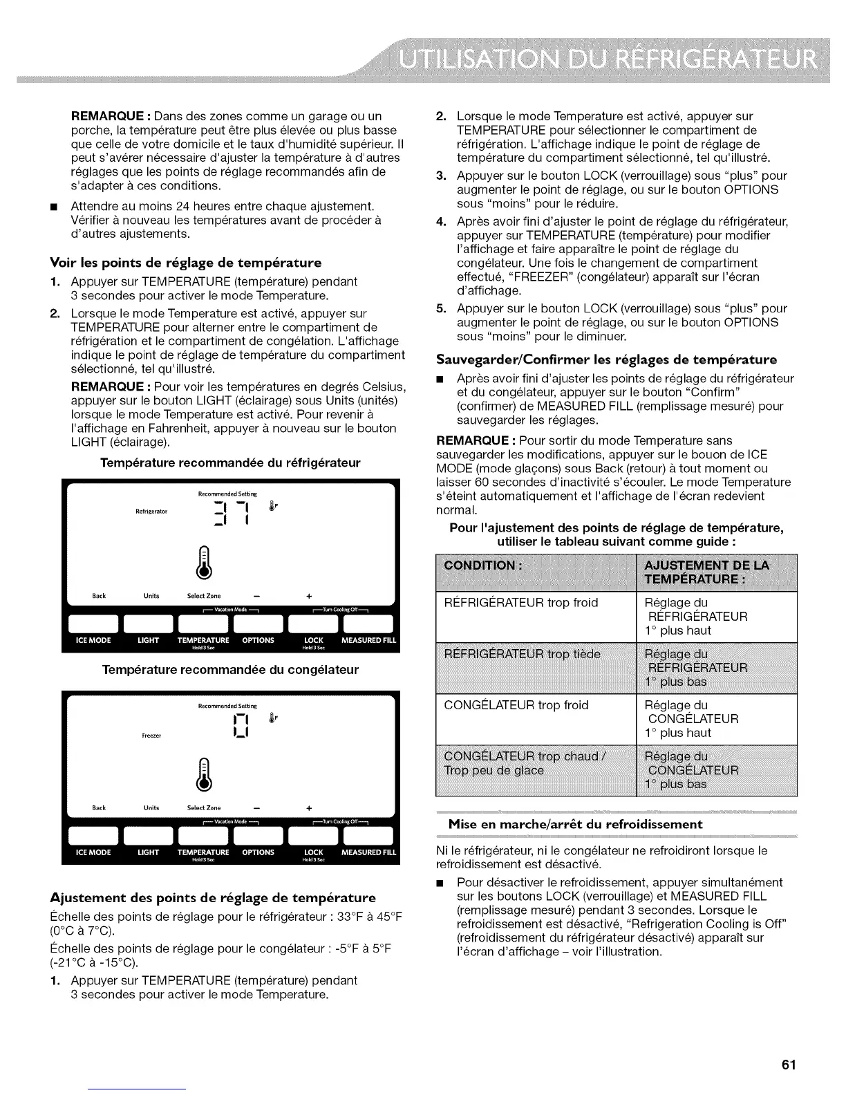• Apres avoir fini d'ajuster les points de reglage du refrigerateur