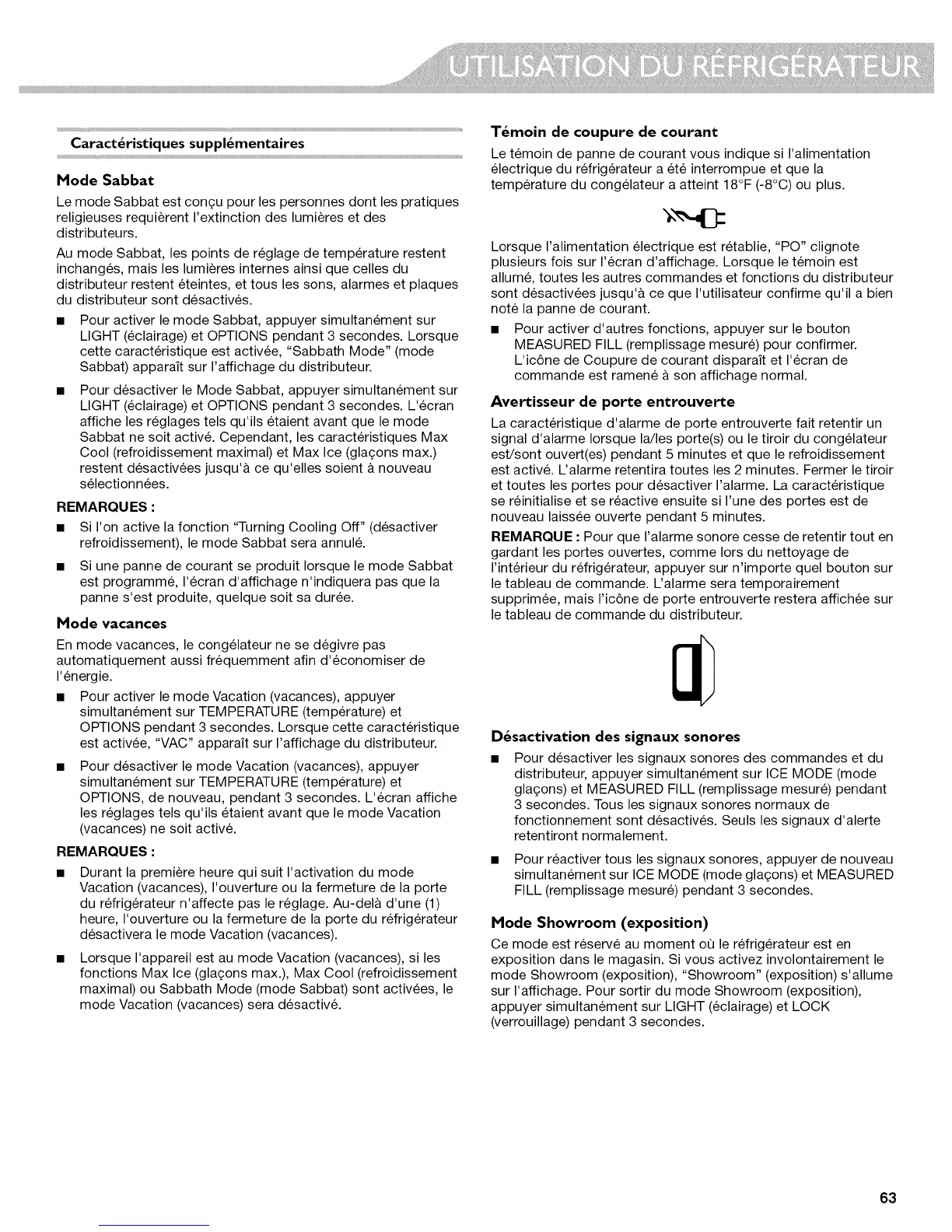 Ce mode est reserve au moment oQ le refrigerateur est en
