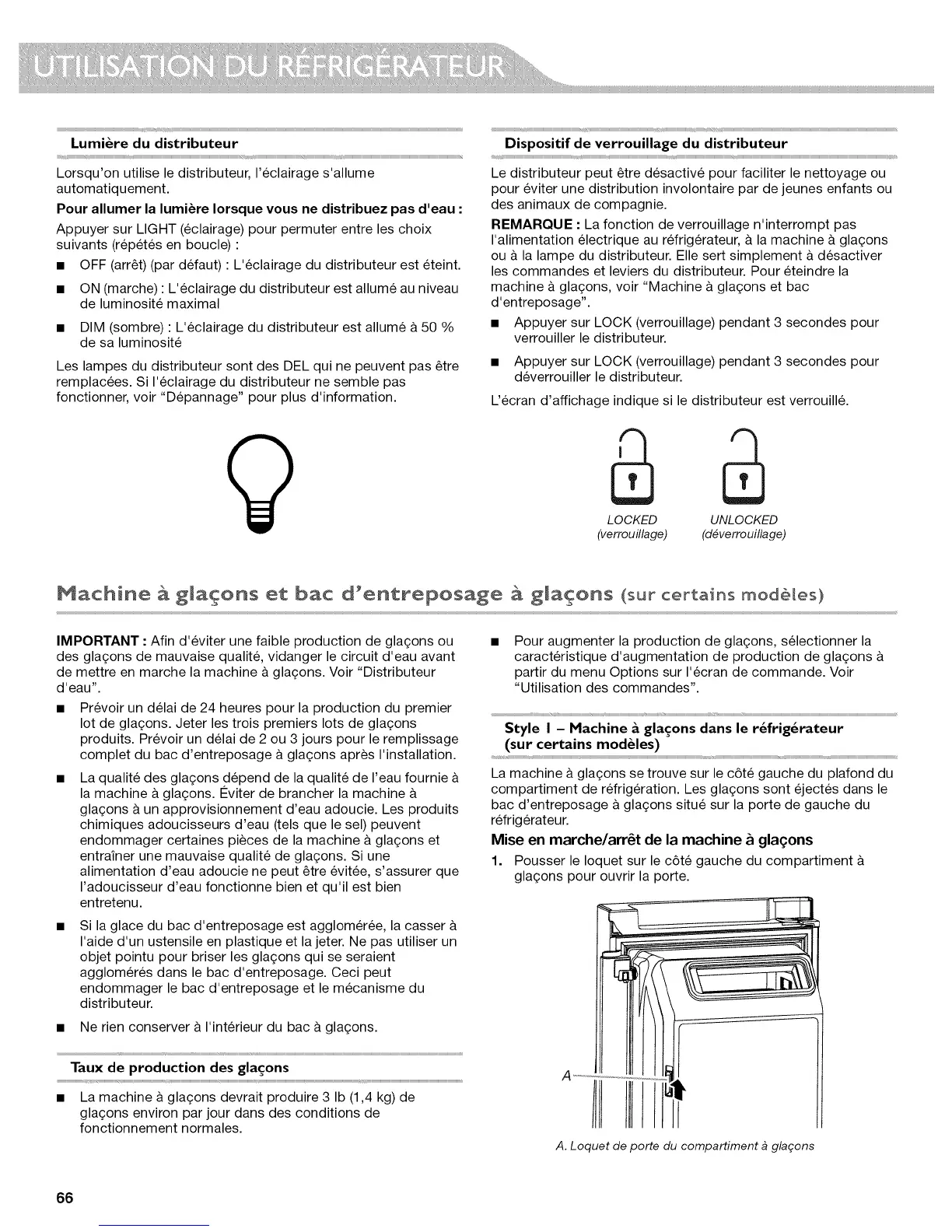 compartiment de refrigeration. Les glagons sont ejectes dans le