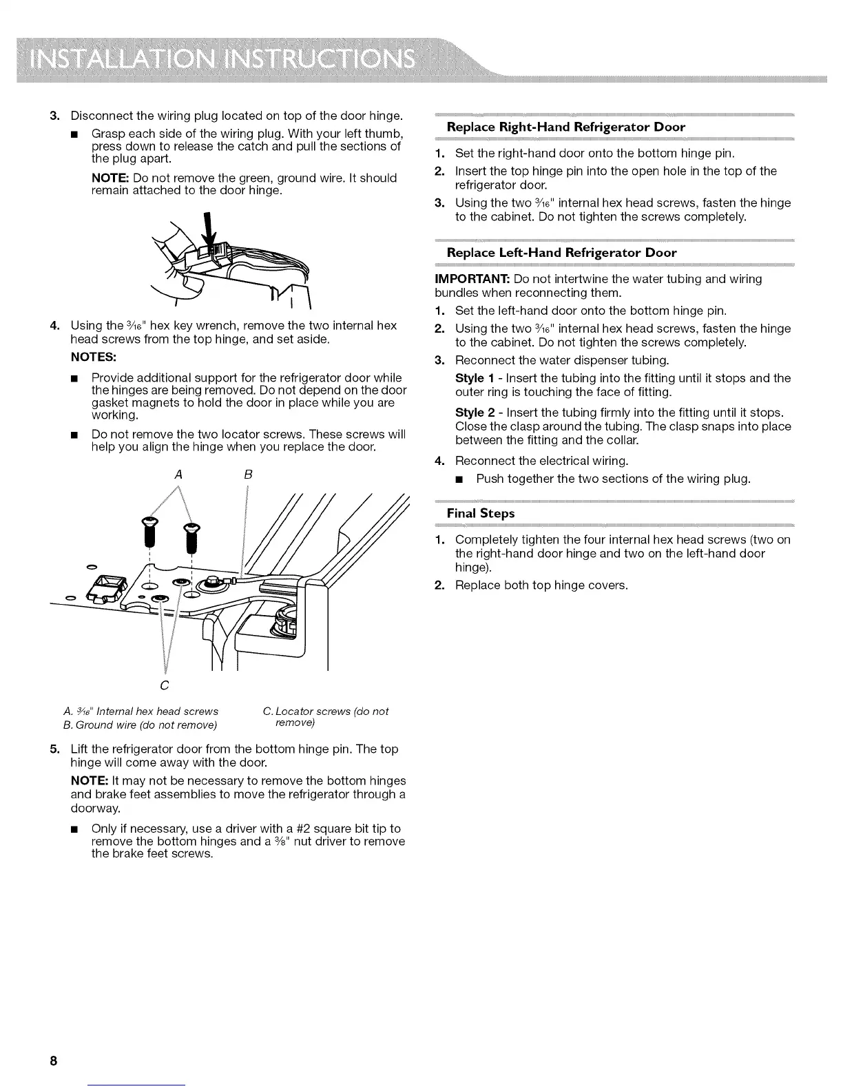 3. Using the two 3/le"internal hex head screws, fasten the hinge