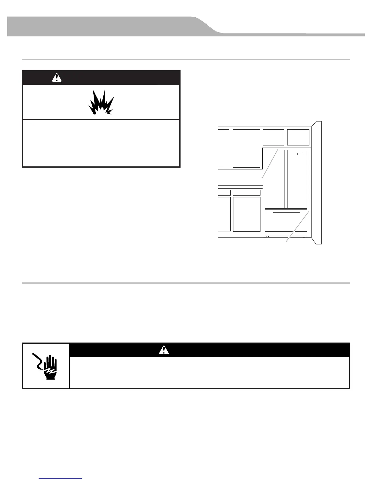 3³⁄₄" (9,5 cm) entre el refrigerador y la pared, para permitir que la