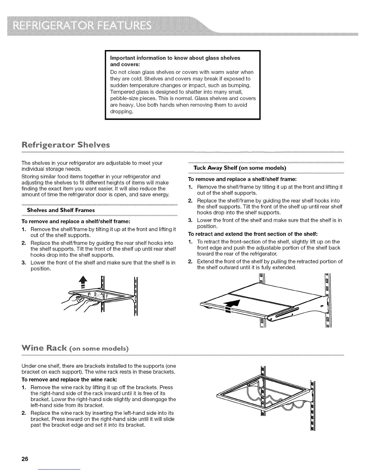KitchenAid KFIS29BBMS03 - Refrigerator Features; Refrigerator Shelves; Shelves and Sheff Frames; Tuck Away Shelf