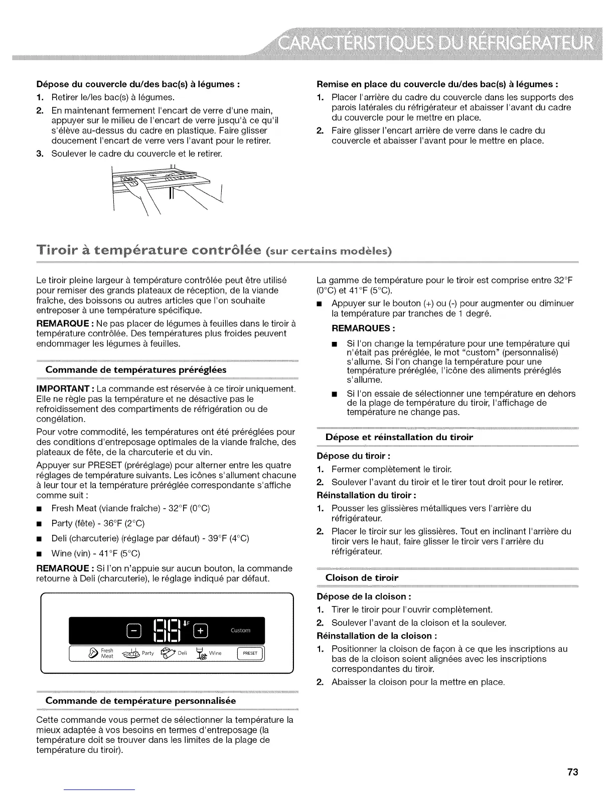 Tiroir a Cemperatur÷ ¢onCr6[e÷ (sur cerCains mod&_es)