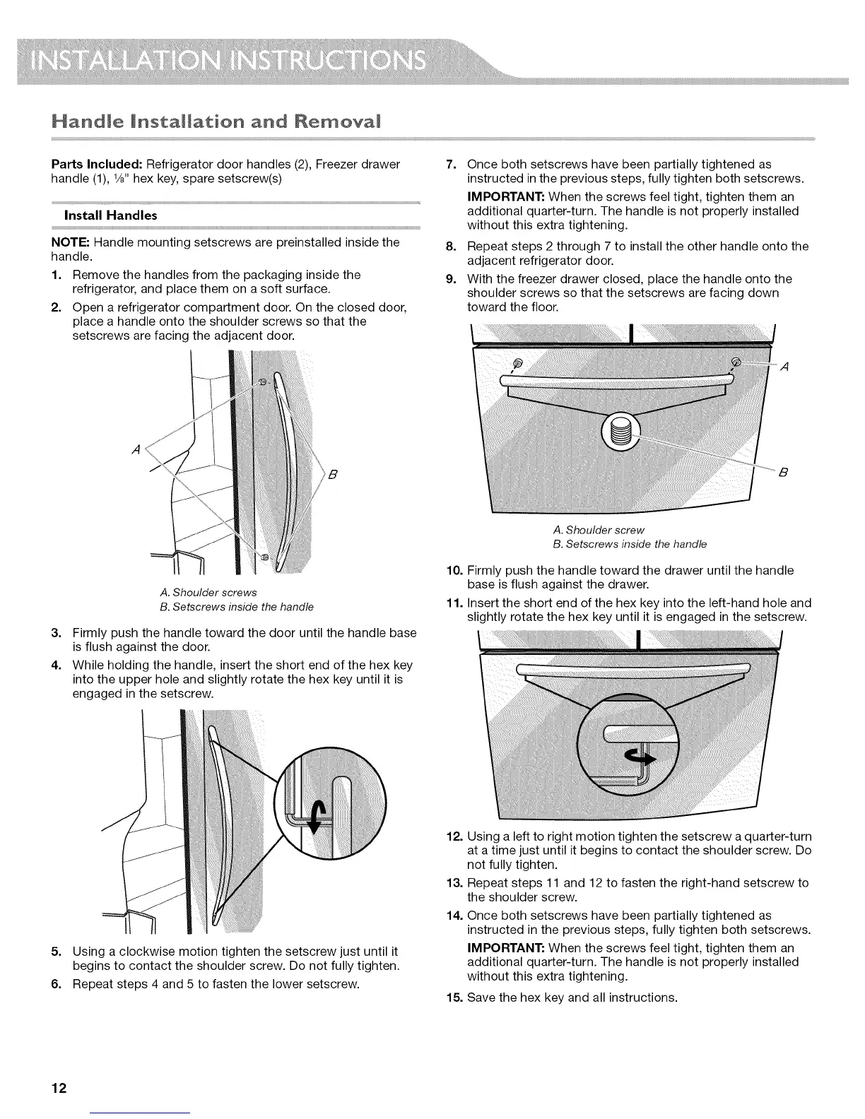 NOTE: Handle mounting setscrews are preinstalled inside the