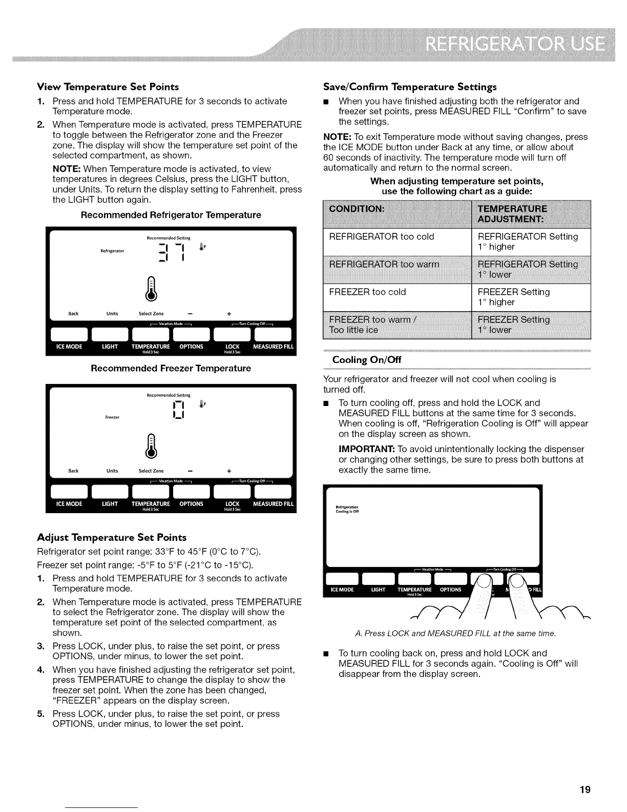 When cooling is off, "Refrigeration Cooling is Off" will appear